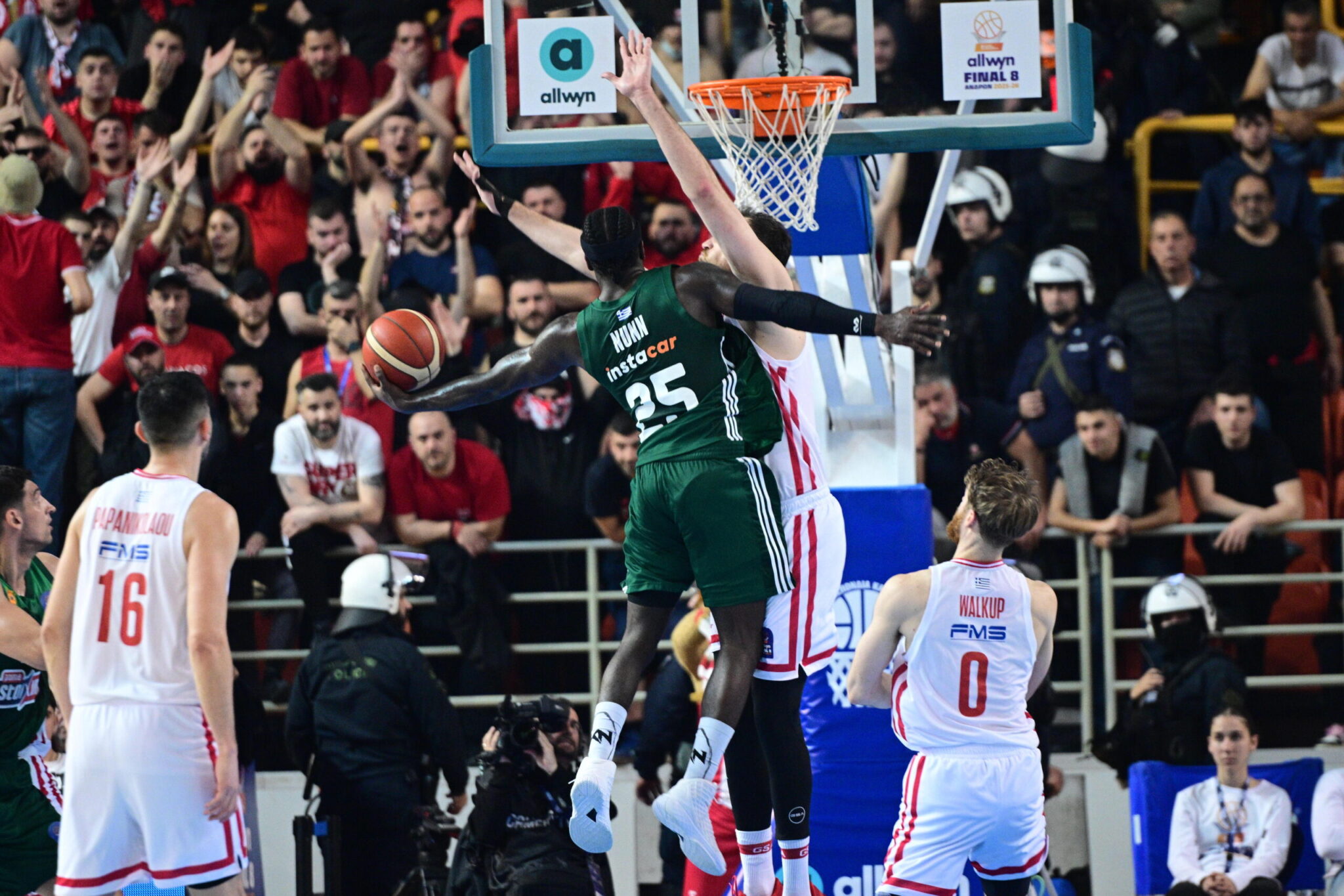 Παρόλα αυτά, η «ερυθρόλευκη» άμυνα – που έκλεινε προς τα μέσα – έδινε τον απαραίτητο χώρο στον Ρογκαβόπουλο (14π.) να σουτάρει αμαρκάριστος και ο Έλληνας φόργουορντ ήταν και σε αυτό το δεκάλεπτο αλάνθαστος από την περιφέρεια, έχοντας συνολικά 3/3 τρίποντα (39-56).