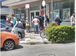 Ο συνωστισμός και οι ουρές έξω από τις τράπεζες και τα μαγαζιά κινητής τηλεφωνίας άφησαν πικρή γεύση από την κατά τα άλλα πειθαρχημένη πόλη την πρώτη ημέρα της άρσης των μέτρων προστασίας. Δεκάδες άνθρωποι έξω από τις τράπεζες, με ή χωρίς μάσκες, ο ένας κοντά στον άλλον. Άλλοι απλά για να χρησιμοποιήσουν το ΑΤΜ μηχάνημα (χωρίς γάντια), άλλοι για να μπουν στο κτίριο και να εξυπηρετηθούν.