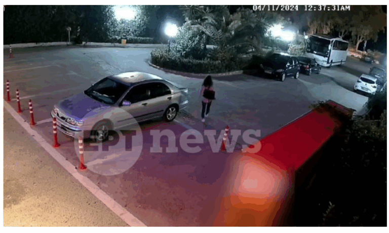 Στο βίντεο καταγράφονται τα όσα έγιναν στον προαύλιο χώρο του ξενοδοχείου εκείνο το μοιραίο βράδυ. Στις 00:07 καταφθάνει η άτυχη Γαρυφαλλιά και λίγη ώρα αργότερα καταφθάνει ο σύντροφός της. Μετά από λίγα λεπτά αποχωρεί πρώτος ο άνδρας και στη συνέχεια το θύμα της επίθεσης.