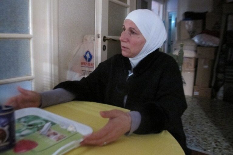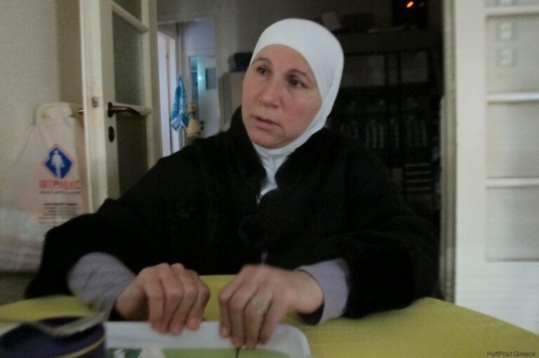 Στις 20 Οκτωβρίου του 2015 μαζί με τον 16χρονο γιο της και την 10χρονη κόρη της εγκατέλειψαν την Συρία- πέρασαν τα σύνορα με τον Λίβανο και από το αεροδρόμιο της Βυρηττού πέταξαν για Κωνσταντινούπολη. Λίγες μέρες μετά είχαν περάσει στην Ελλάδα. Την συναντώ σε ένα διαμέρισμα στο κέντρο της Αθήνας- φιλοξενείται εκεί από τη Στέγη Σύρων Ελλάδας. «Δόξα τω θεώ», μου λέει- «αν δεν μας βοηθούσαν οι άνθρωπο αυτοί, θα μέναμε στο δρόμο».
