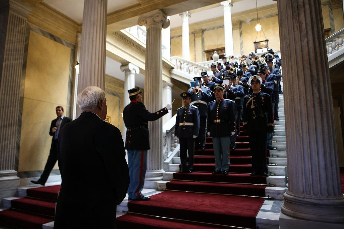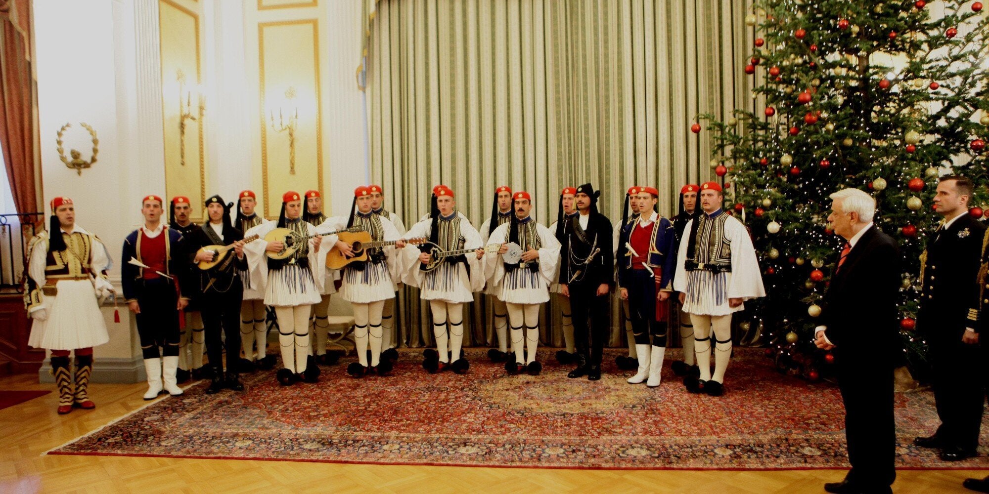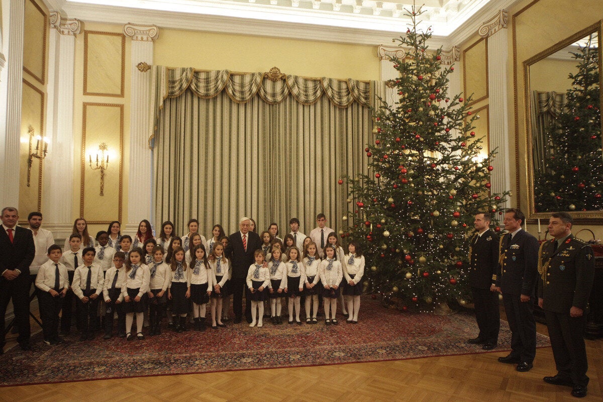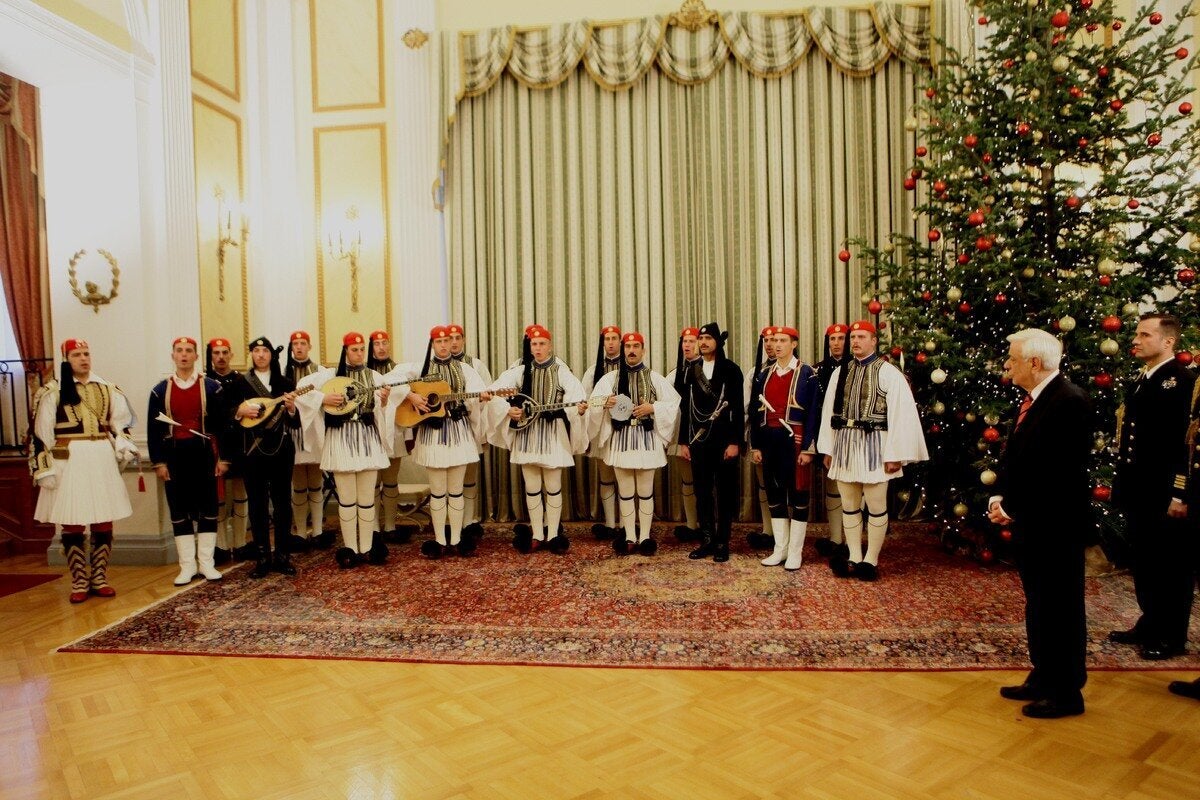 Με ευχές για υγεία, ευτυχία και ελπίδα για μια καλύτερη χρονιά υποδέχθηκε ο Πρόεδρος της Δημοκρατίας Προκόπης Παυλόπουλος την Μπάντα των Ενόπλων Δυνάμεων, την Προεδρική Φρουρά, παιδικές χορωδίες και συλλόγους, που του έψαλλαν τα κάλαντα των Χριστουγέννων στο Προεδρικό Μέγαρο.