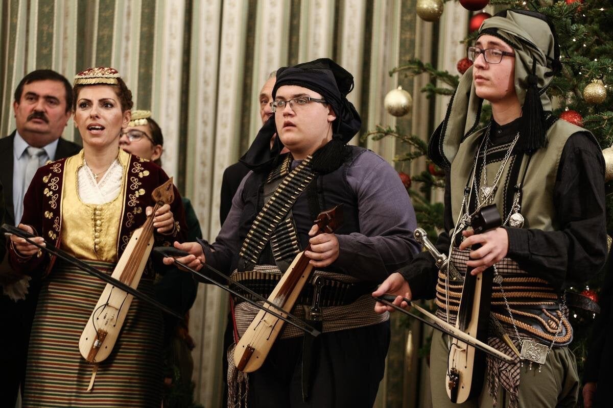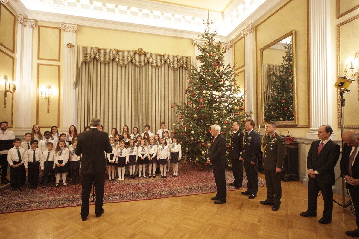 Ειδικότερα, ο Πρόεδρος της Δημοκρατίας άκουσε αρχικά τα κάλαντα από την Μπάντα των Ενόπλων Δυνάμεων, εν συνεχεία από την Προεδρική Φρουρά, και ακολούθως από την παιδική χορωδία του Δήμου Παπάγου-Χολαργού, το Λύκειο Ελληνίδων, την Ομοσπονδία Κυπριακών Οργανώσεων Ελλάδος και την «Εύξεινος Λέσχη Ποντίων Ναούσης».