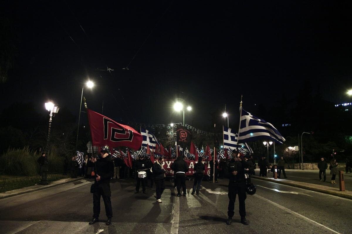 Το ραντεβού μελών και υποστηρικτών της Χρυσής Αυγής είχε οριστεί για τις 7 το απόγευμα στο μνημείο των Ιμίων και ολοκληρώθηκε περίπου στις 9 το βράδυ. Στελέχη της Χρυσής Αυγής, ανάμεσά τους ο Ηλίας Παναγιώταρος, απηύθηναν χαιρετισμούς και κατέθεσαν στεφάνι.
