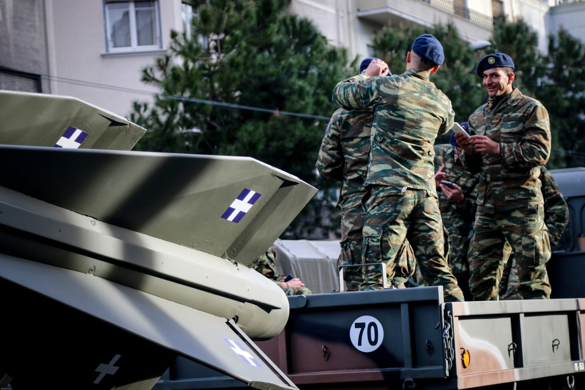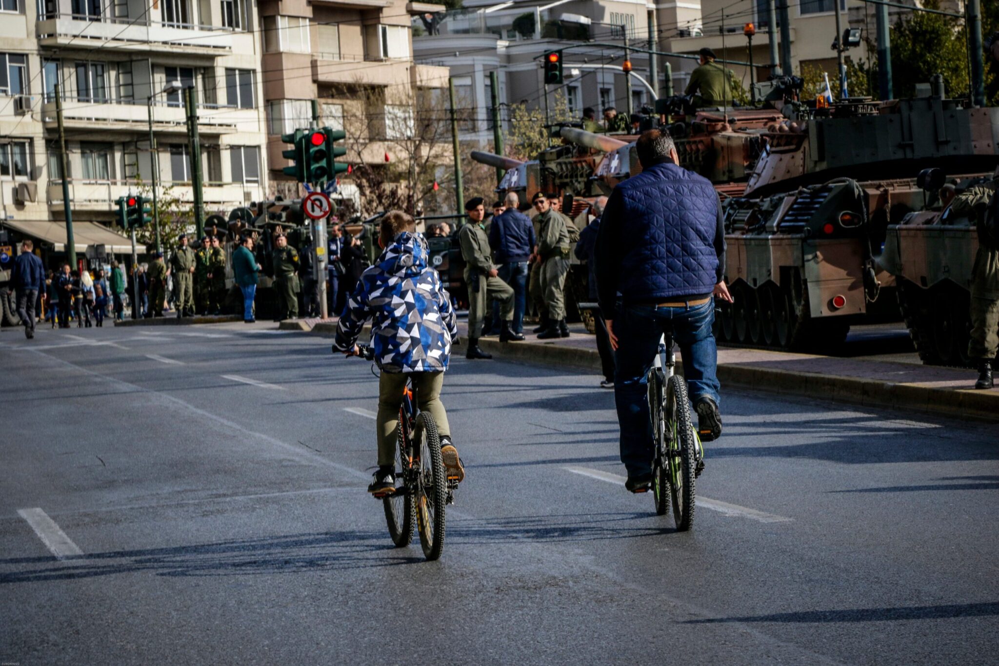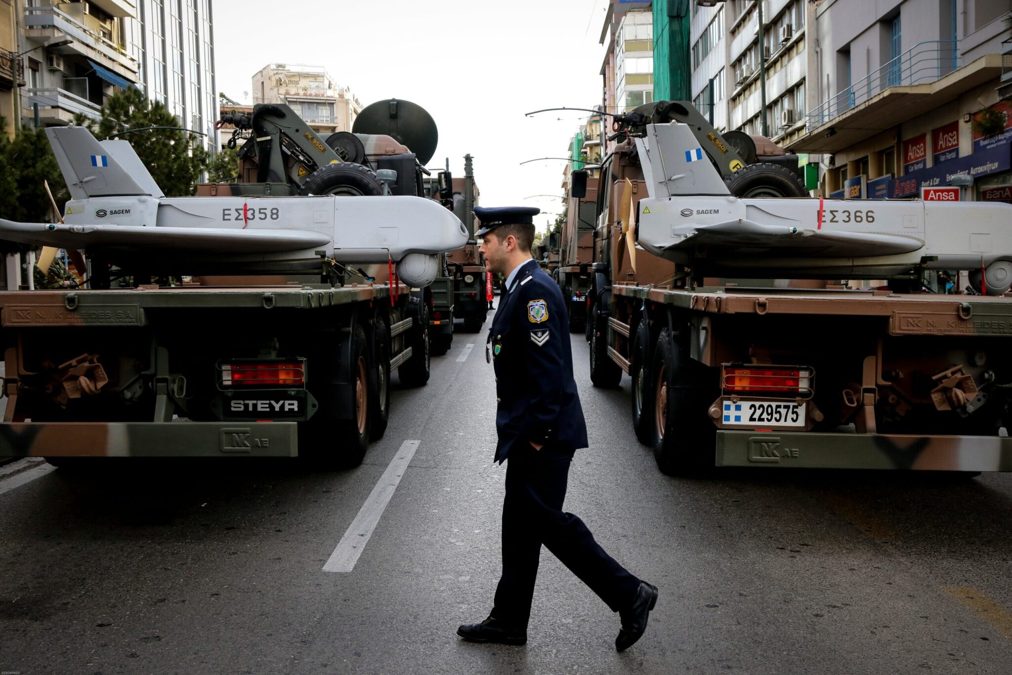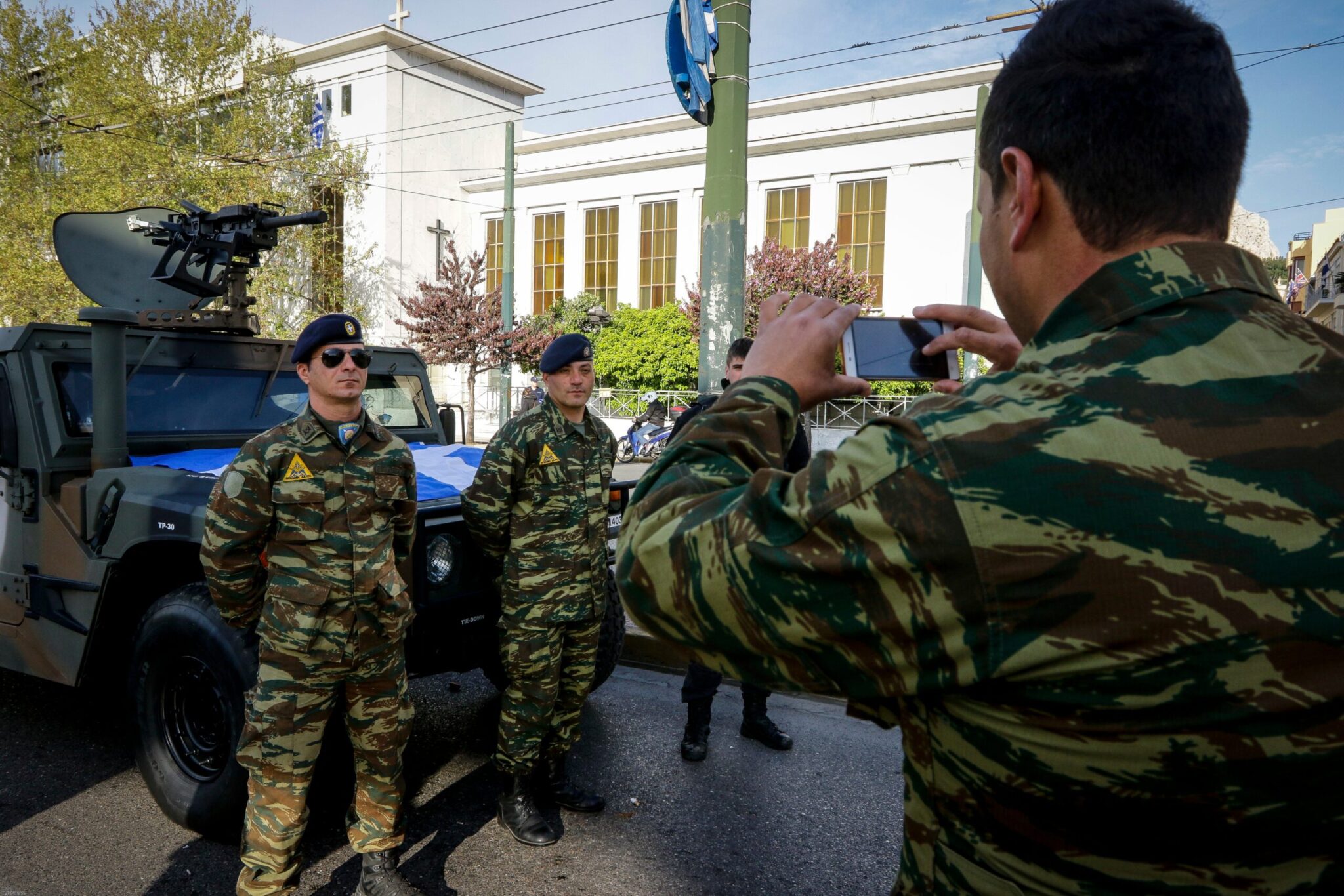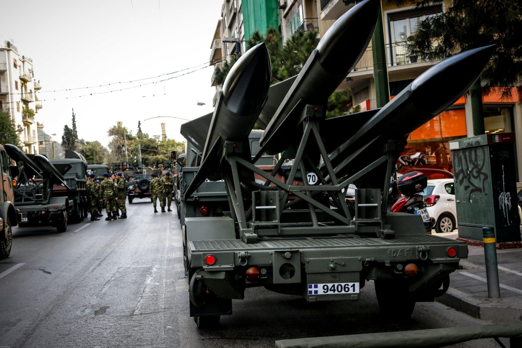 Οι άνδρες και οι γυναίκες των Ενόπλων Δυνάμεων Ένοπλες, με τα άρματα και άλλα οχήματα, είχαν συγκεντρωθεί και παραταχθεί από νωρίς στην περιοχή κοντά στην Αψίδα του Αδριανού και τη λεωφόρο Συγγρού.