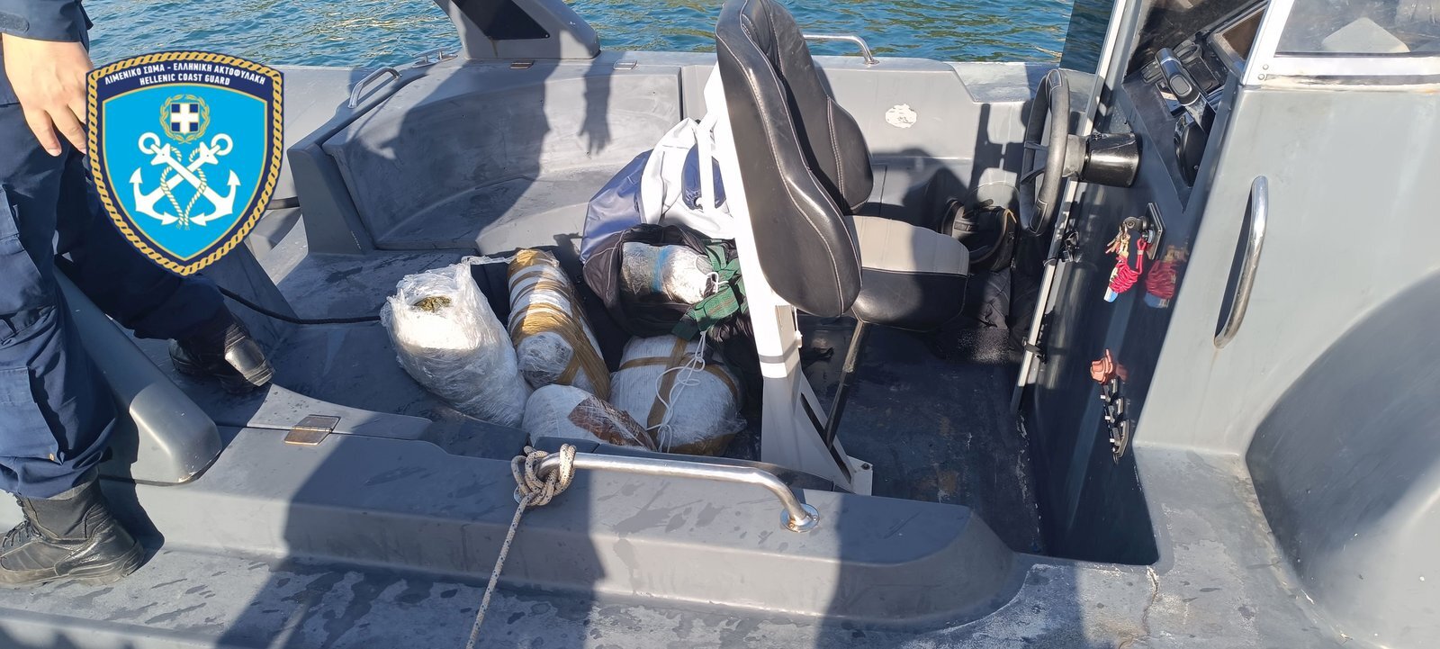 Κατά τη διάρκεια των ερευνών, με τη συνδρομή ιδιώτη δύτη, ανεσύρθησαν πέντε πλαστικές συσκευασίες που περιείχαν 79,75 κιλά ακατέργαστης κάνναβης από το εσωτερικό του σκάφους. Την επόμενη ημέρα (25 Οκτωβρίου 2025), στη θαλάσσια περιοχή «Βόντα» Σαγιάδας, εντοπίστηκε επιπλέον σάκος με έξι νάιλον συσκευασίες και 56,13 κιλά της ίδιας ουσίας.