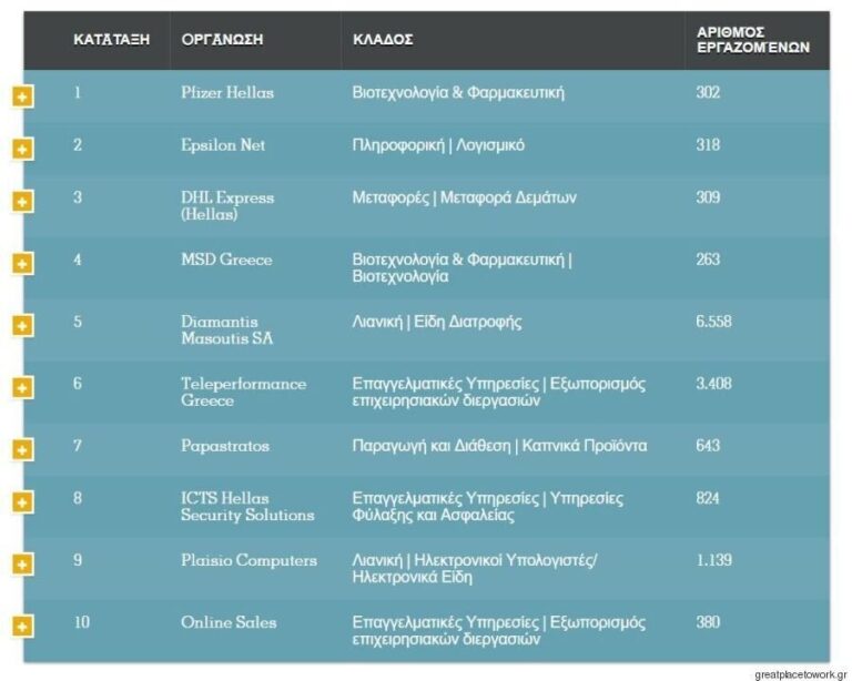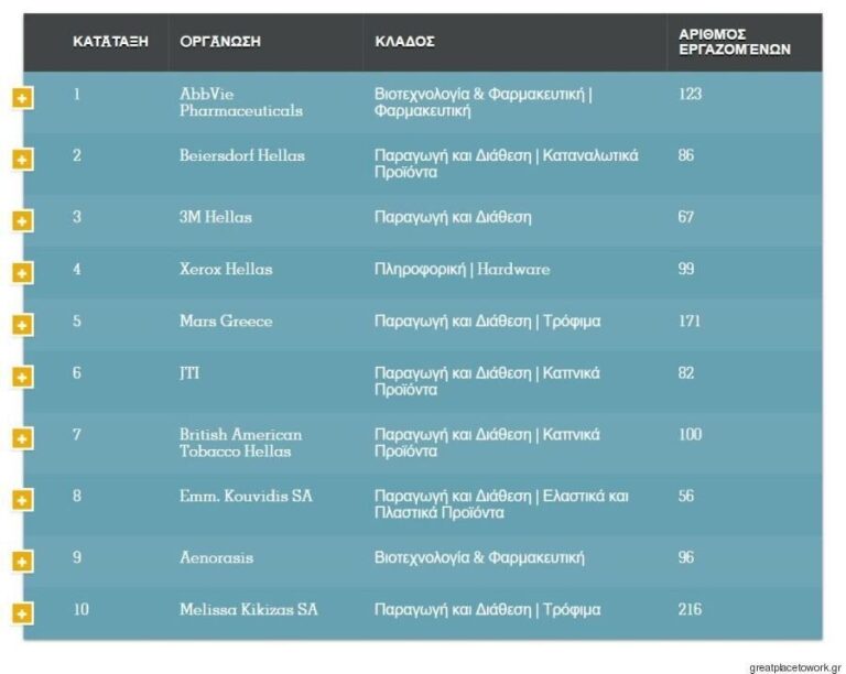 Το ινστιτούτο «Great Place to Work» κατέγραψε και φέτος της ελληνικές εταιρίες με το καλύτερο εργασιακό περιβάλλον, και τις παρουσίασε με ένα ένθετο που κυκλοφόρησε μαζί με την κυριακάτικη έκδοση της «Καθημερινής».
