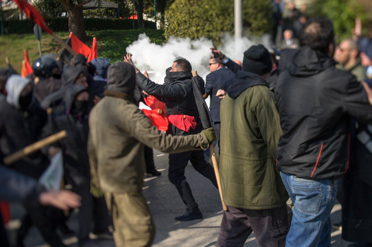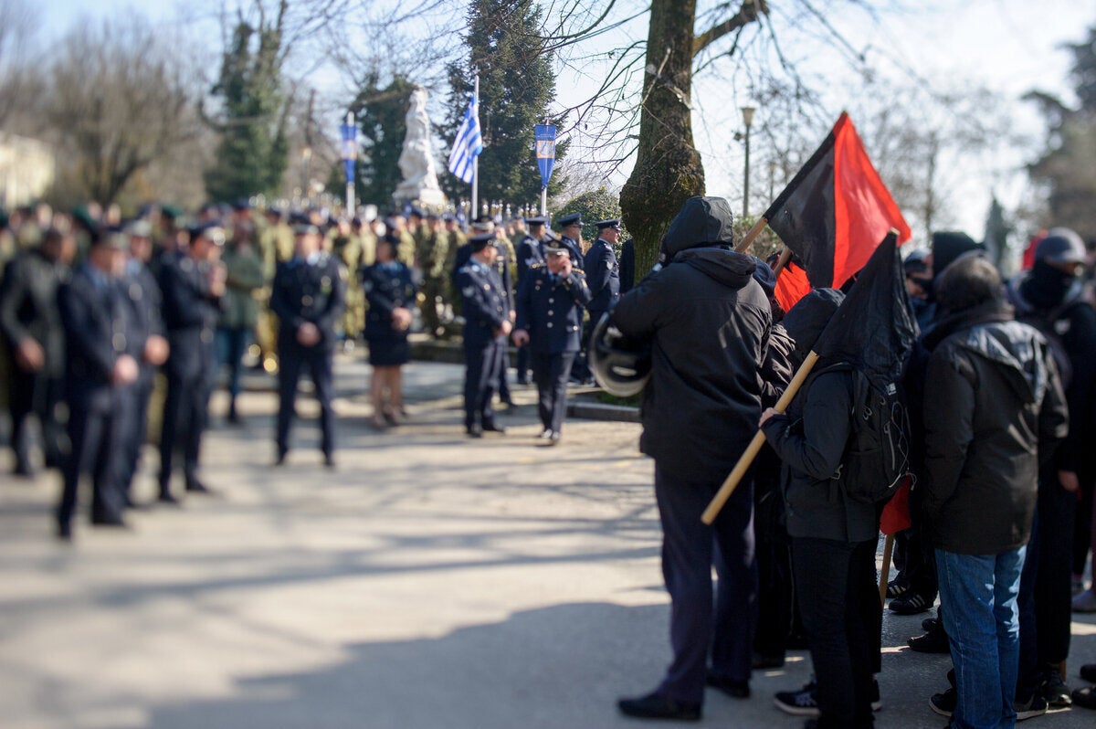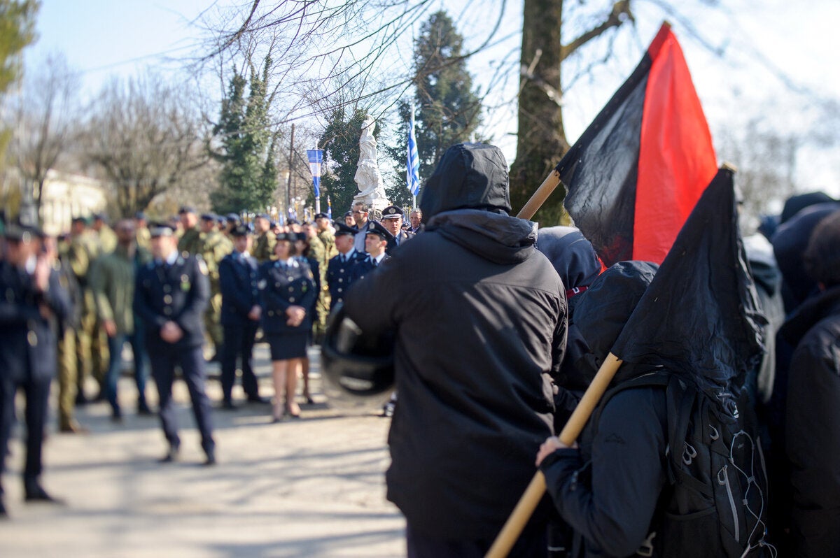 Σύμφωνα με το Εpirusgate, οι διαδηλωτές έφθασαν στο σημείο που γίνονταν κατάθεση στεφάνων στο Ηρώο Μπιζανομάχων, λίγο πριν την παρέλαση για την απελευθέρωση της πόλης των Ιωαννίνων, και συγκρούστηκαν με αστυνομικούς που προσπάθησαν να τους απωθήσουν.