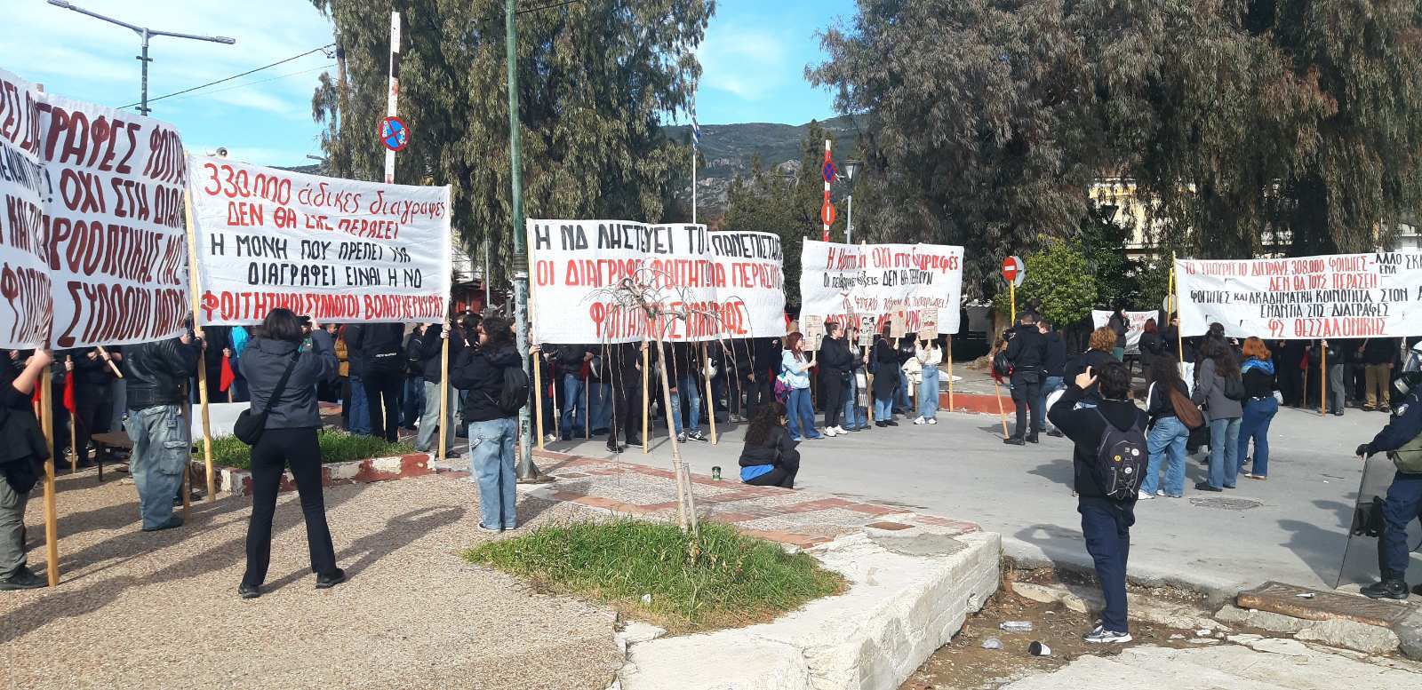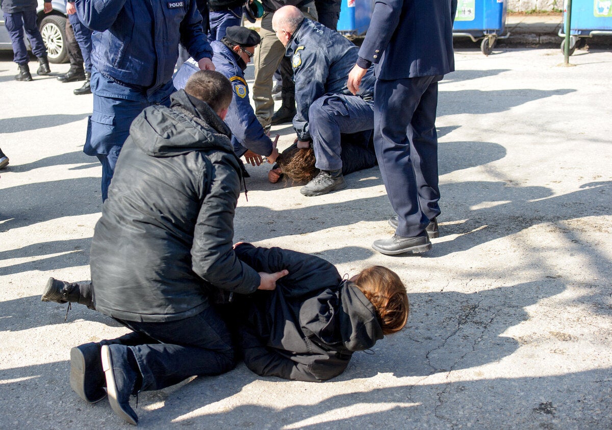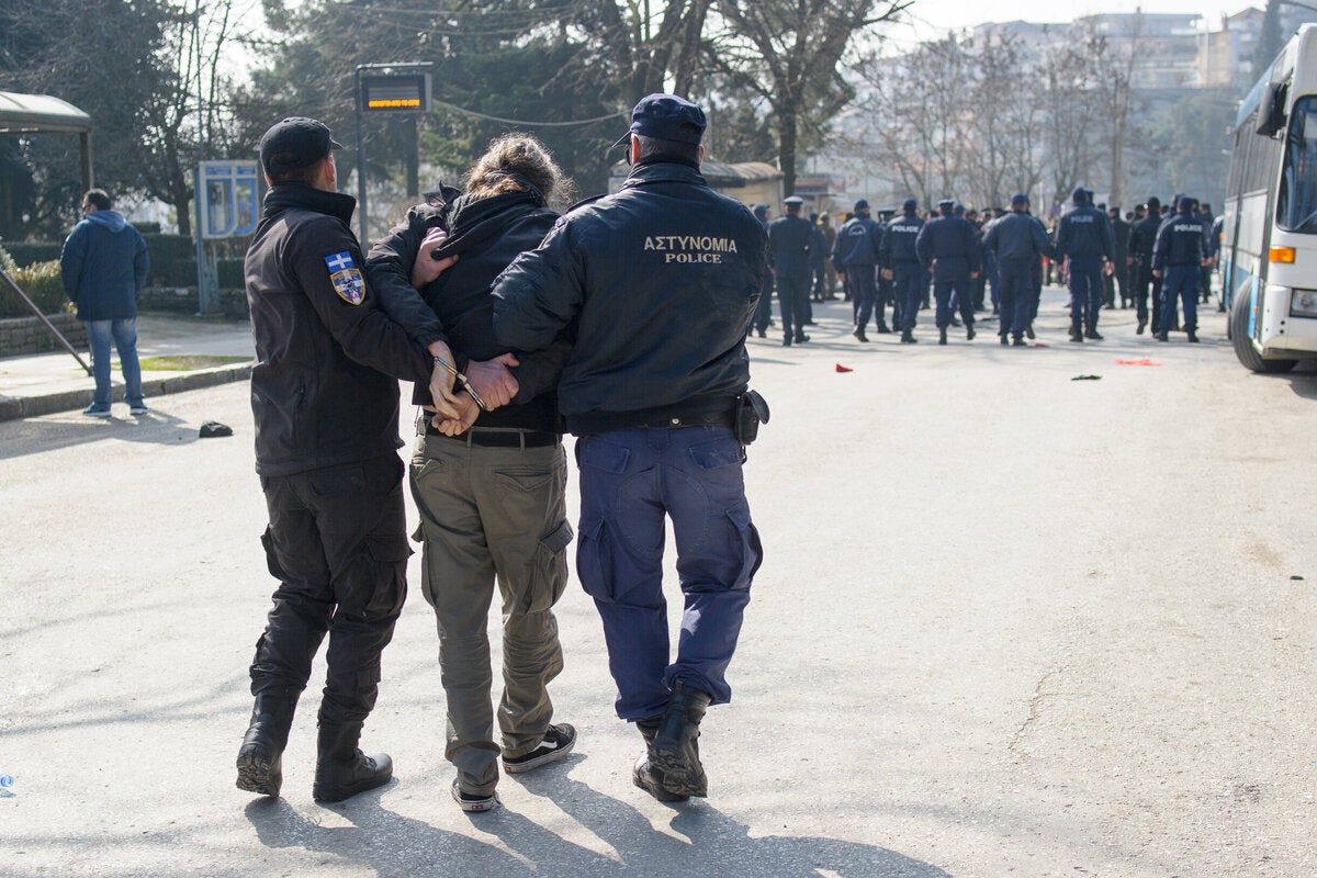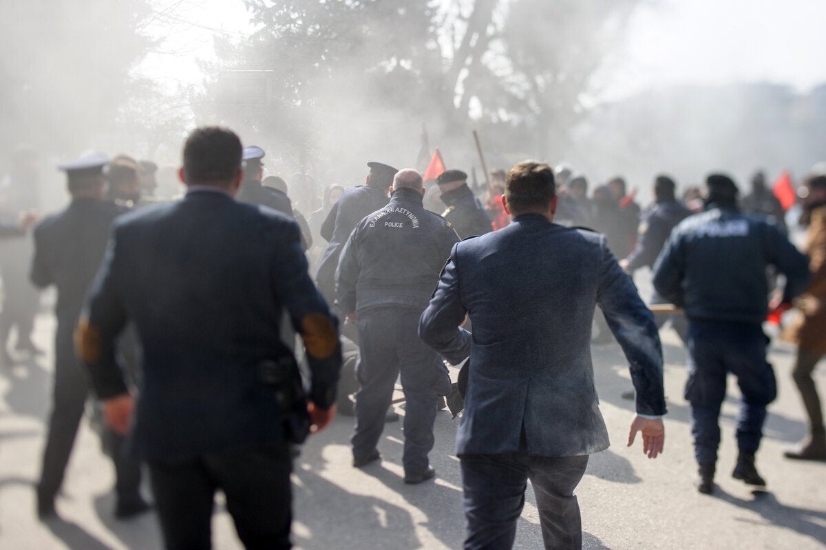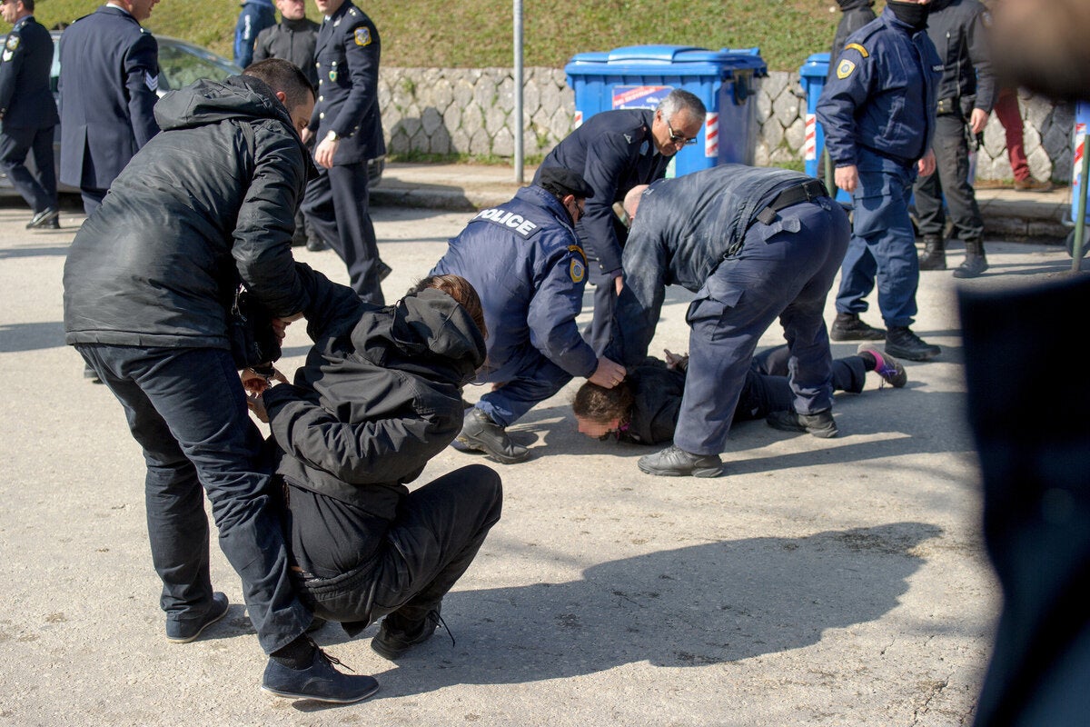 Ακολούθησε πετροπόλεμος και μέχρι τώρα έχουν γίνει προσαγωγές τεσσάρων ατόμων στο αστυνομικό μέγαρο.