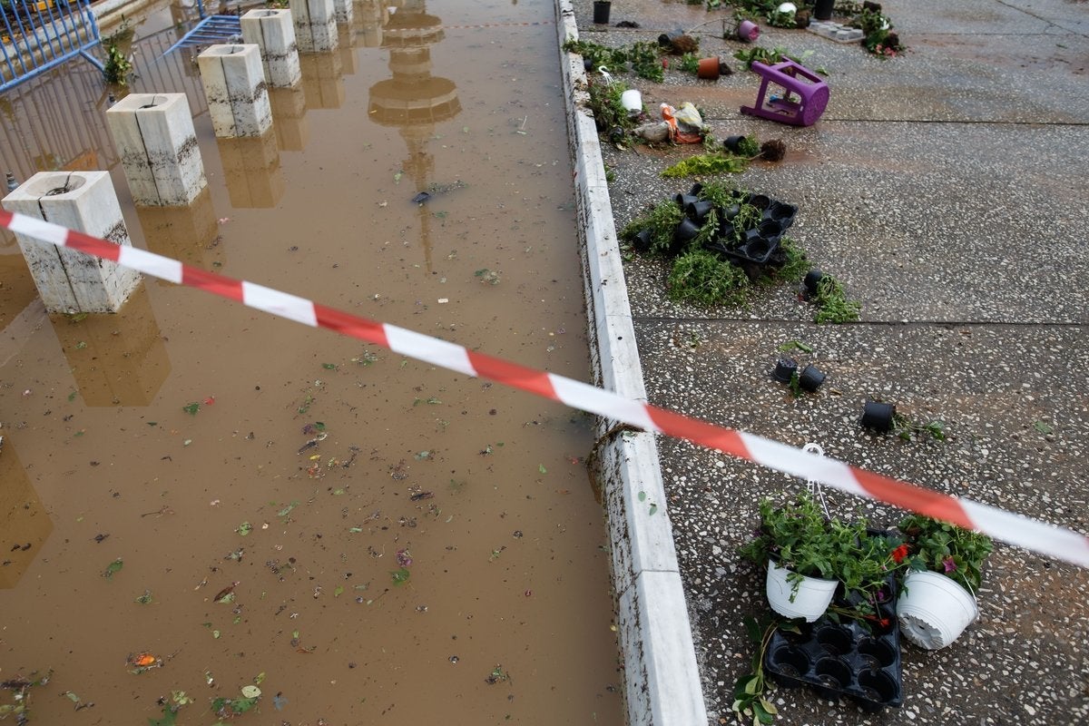 Η καταιγίδα, εκτός από ισχυρή νεροποντή έφερε και χαλαζόπτωση. Κεντρικοί δρόμοι μετατράπηκαν μέσα σε λίγα λεπτά σε λίμνες, δημιουργώντας προβλήματα στη μετακίνηση των οχημάτων και των πεζών. To νερό υπερχείλισε στα πεζοδρόμια, ενώ σε διάφορα σημεία στο κέντρο της πόλης σημειώνονται διακοπές ρεύματος.