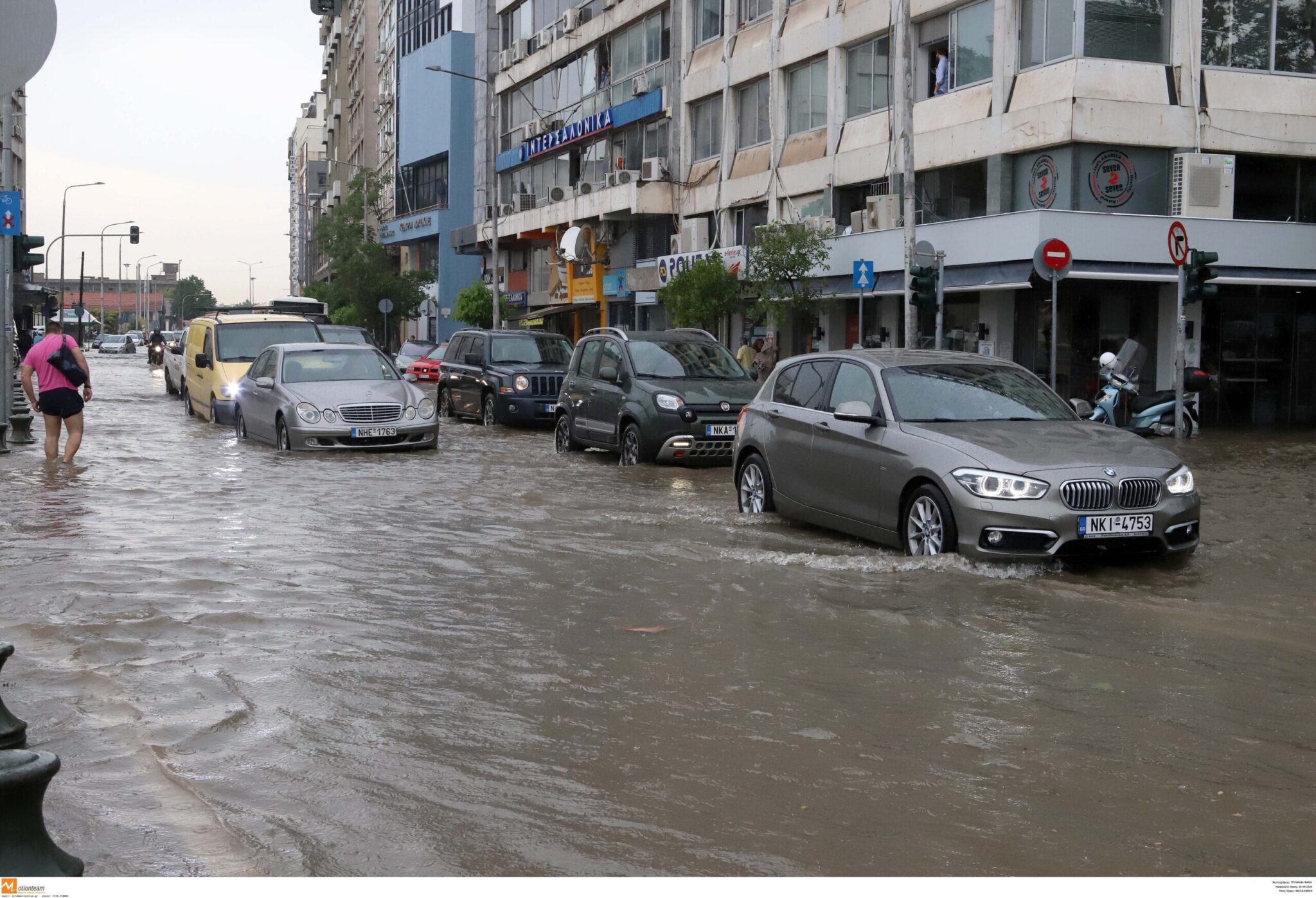 Δρόμοι που έχουν μετατραπεί σε «ποτάμια», κυκλοφοριακά προβλήματα, συνθέτουν την εικόνα του κέντρου της Θεσσαλονίκης και άλλων περιοχών του πολεοδομικού συγκροτήματος, εξαιτίας της ισχυρής καταιγίδας που έπληξε την πόλη νωρίς το μεσημέρι.