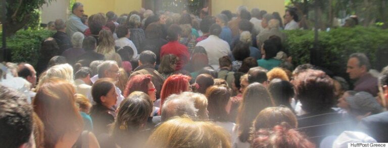 Ο κόσμος είναι εξαντλημένος και εκνευρισμένος- τα πρόσωπά τους, οι σωματικές τους αντανακλαστικές κινήσεις ηρεμούν λίγα δευτερόλεπτα αφού μπούνε μέσα στην εκκλησία.