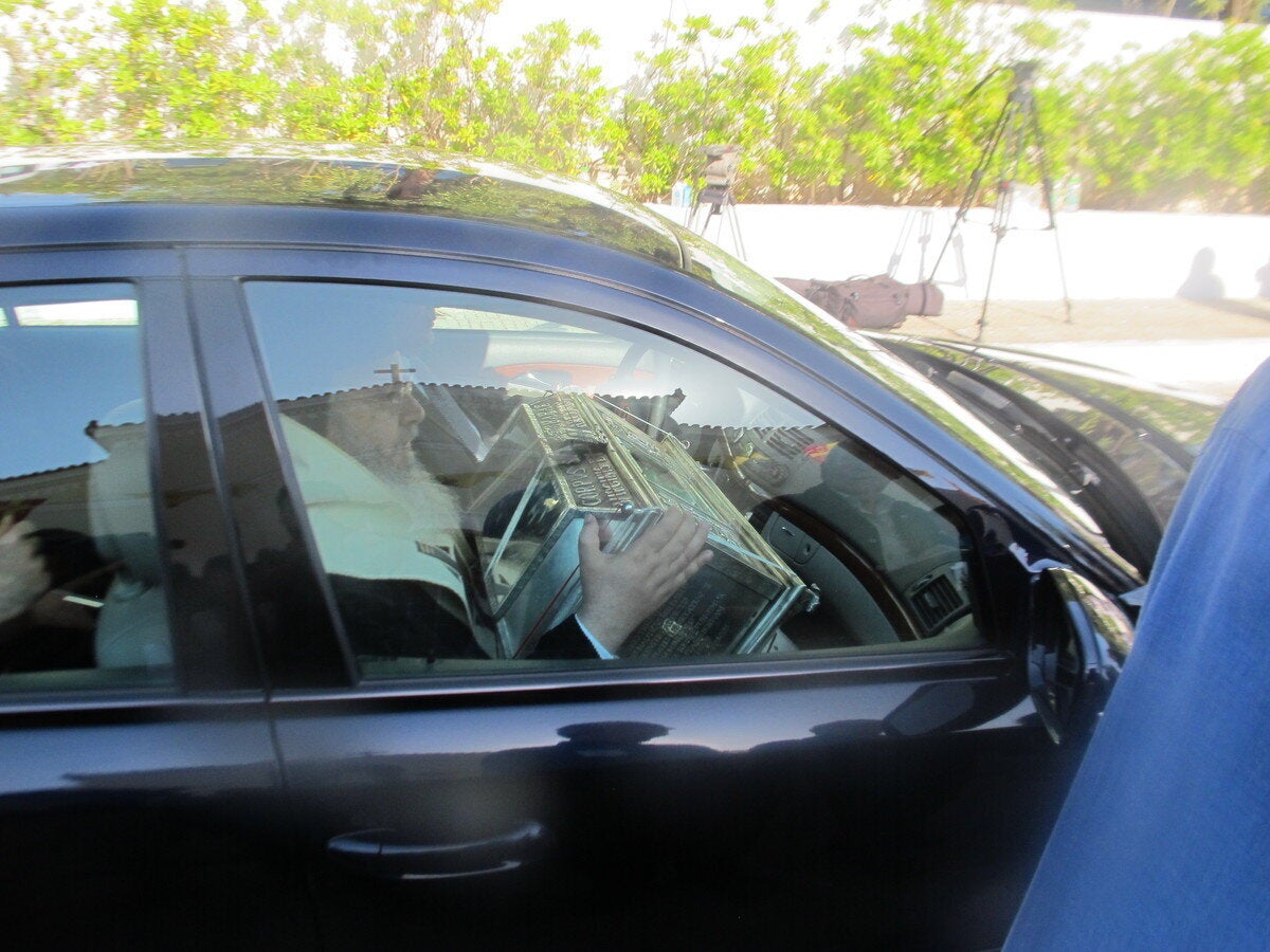 Περίπου στις 09:30 εμφανίζονται ορθόδοξοι και καθολικοί ιερείς, ανάμεσα τους ο διευθυντής της Αποστολικής Διακονίας, επίσκοπος Φαναρίου Αγαθάγγελος. Τελείται μια σύντομη λειτουργία, ακούγεται ως κατευόδιο το «Χριστός Ανέστη» και το σεπτό σκήνωμα μεταφέρεται με προσοχή και τον δέοντα σεβασμό στην αγκαλιά του επισκόπου, στο πρώτο κάθισμα του αυτοκινήτου που θα το μεταφέρει στον Άγιο Σάββα.