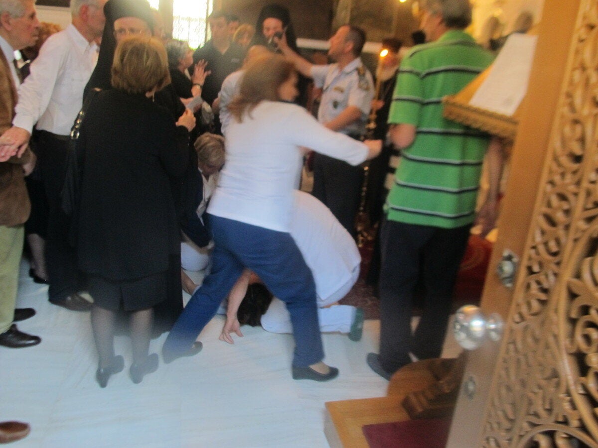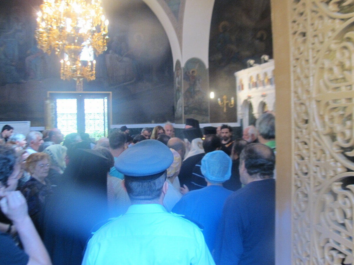 Ζέστη, ορθοστασία, ιδρώτας, αντεγκλήσεις μεταξύ των πιστών, μεταξύ τους αλλά και με αστυνομικούς, ανθρώπους του ναού και σεκιουριτάδες σε υψηλά ντεσιμπέλ και θυμωμένα ηχοχρώματα.