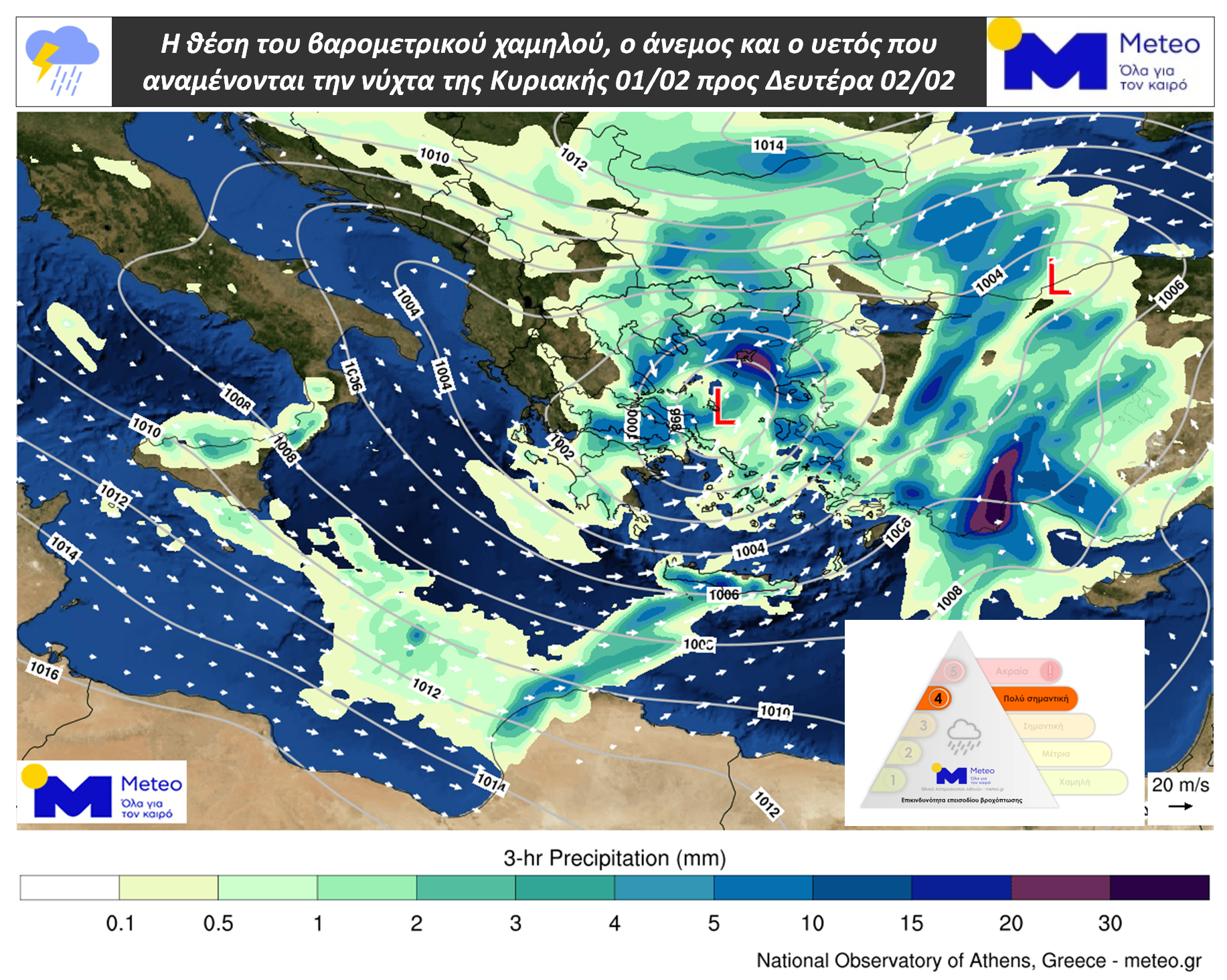 - οι χιονοπτώσεις στα ορεινά των κεντρικών και βορείων ηπειρωτικών αλλά και σε πεδινές περιοχές των βορειοανατολικών (κυρίως στον Έβρο) από το απόγευμα της Κυριακής 01/02