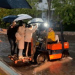 Μάλιστα, ένα όχημα με καρότσα κάποια στιγμή μετέφερε τους πολίτες προκειμένου να περάσουν τον δρόμο με ασφάλεια, ενώ αρκετοί τοποθέτησαν μέχρι και σακούλες στα πόδια τους για να καταφέρουν να διασχίσουν το πλημμυρισμένο σημείο.