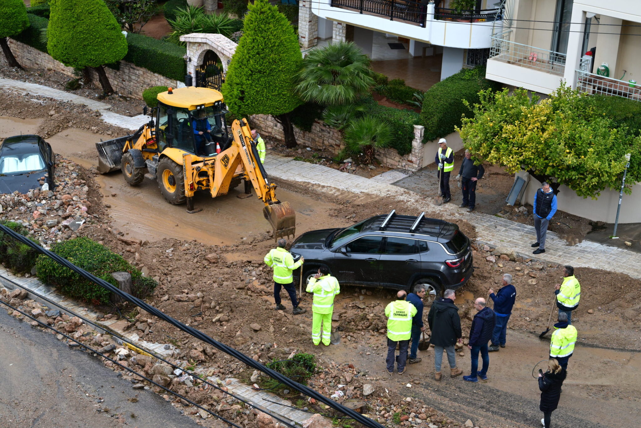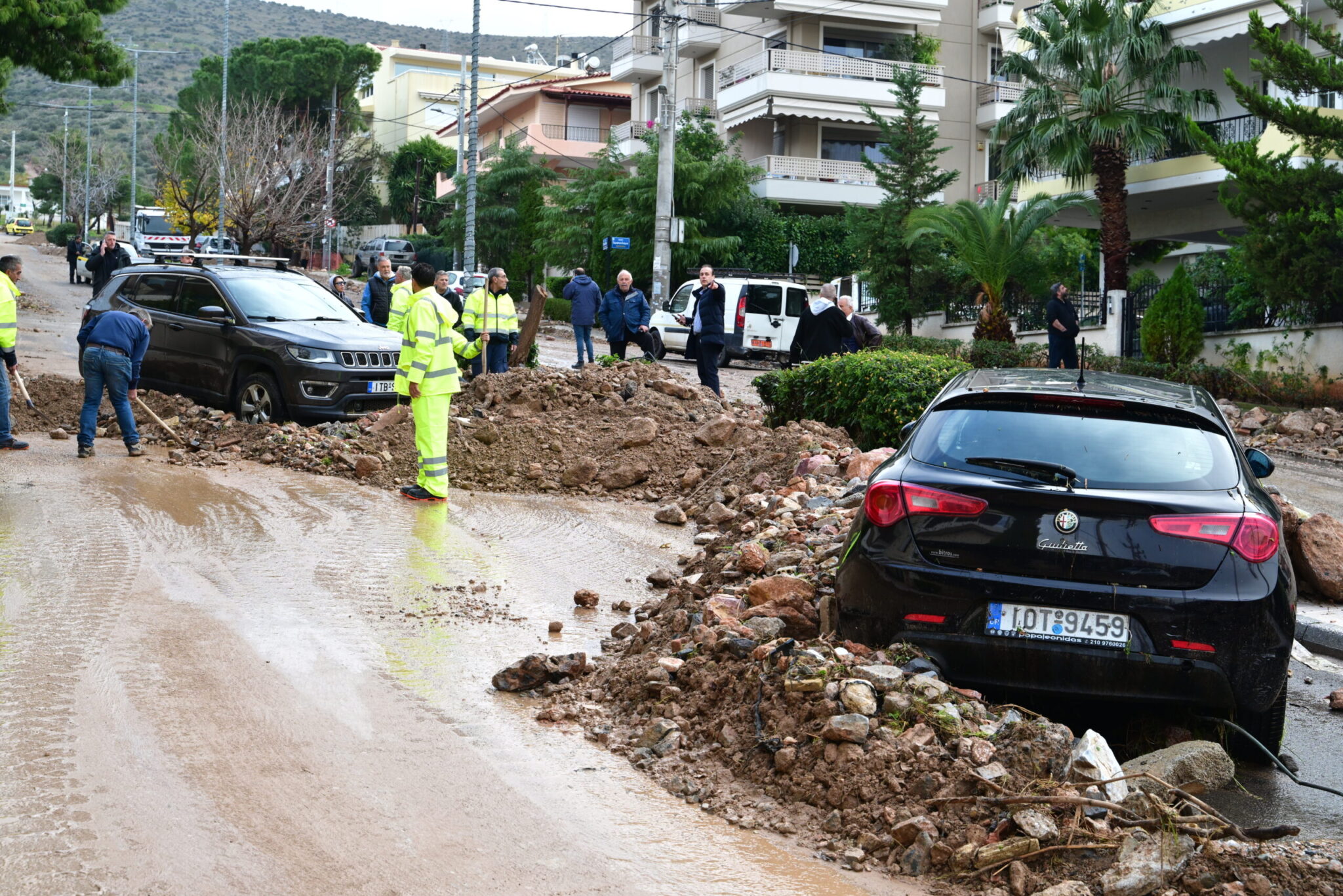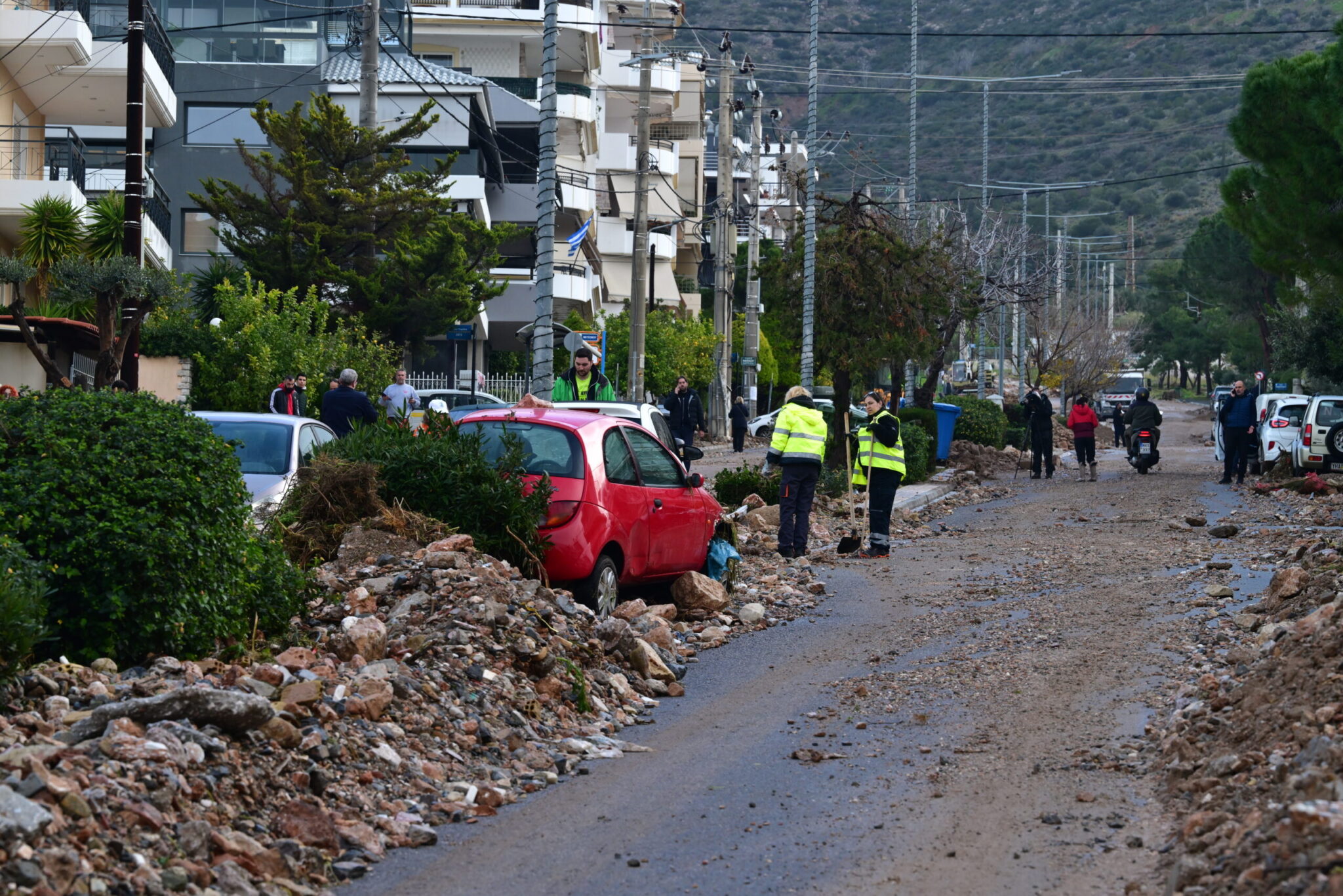 Η επόμενη ημέρα στην περιοχή αποκαλύπτει το μέγεθος της καταστροφής που άφησε πίσω της η σφοδρή καταιγίδα.
