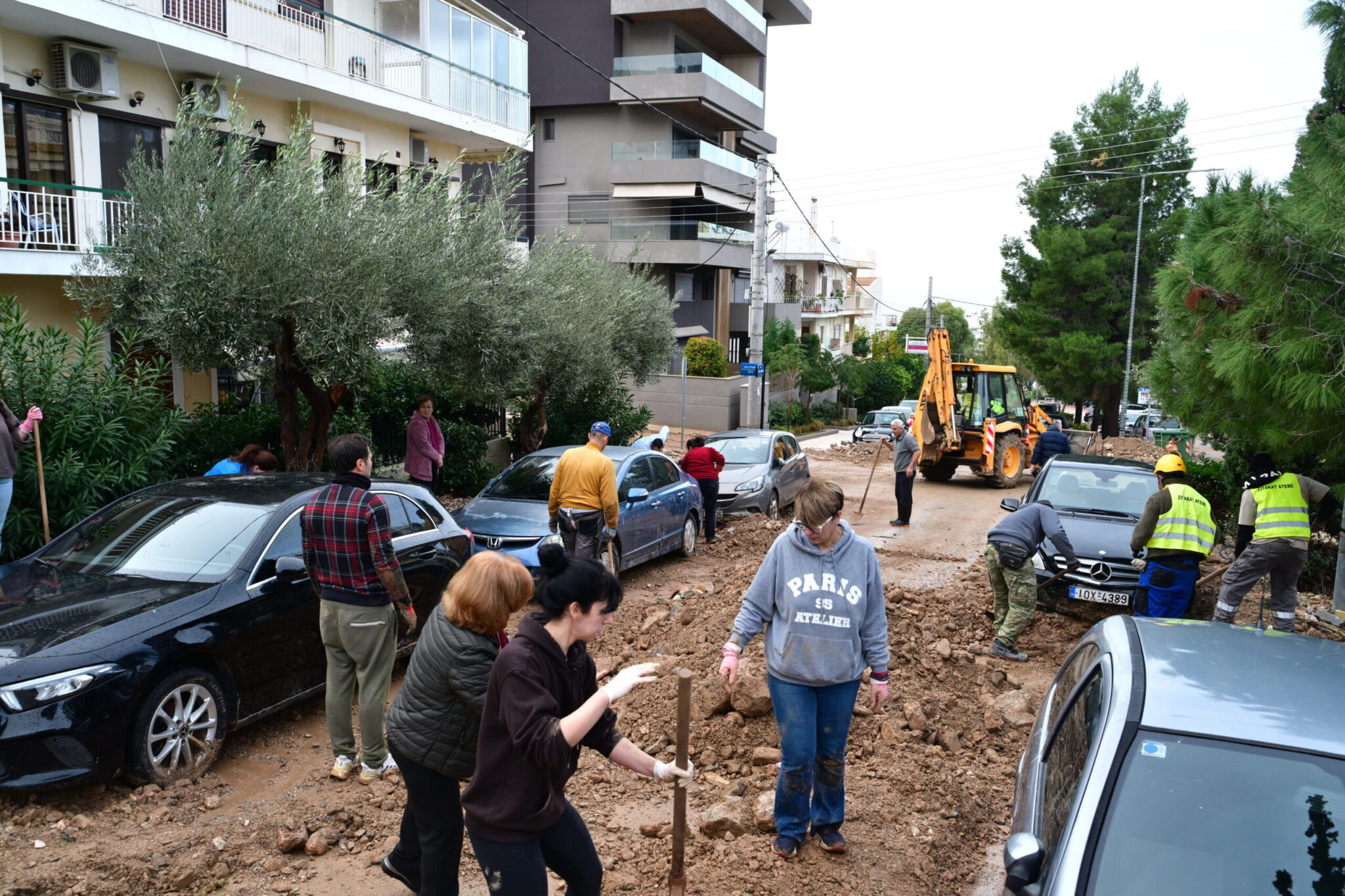 Κάτοικοι και συνεργεία του δήμου από το νωρίς το πρωί άρχισαν το δύσκολο έργο του καθαρισμόυ που δεν είναι εύκολο να ολοκληρωθεί άμεσα ενώ υπάρχει ο κίνδυνος και νέων βροχοπτώσεων σήμερα.