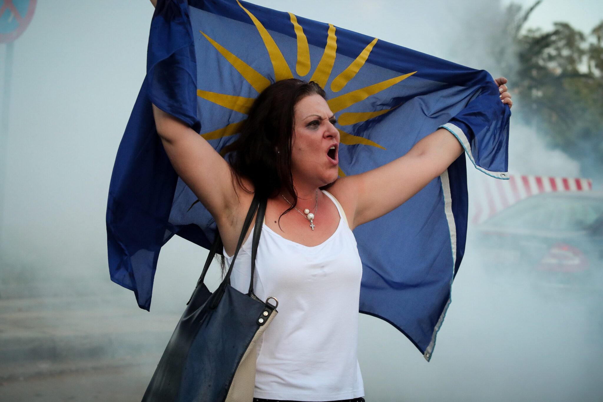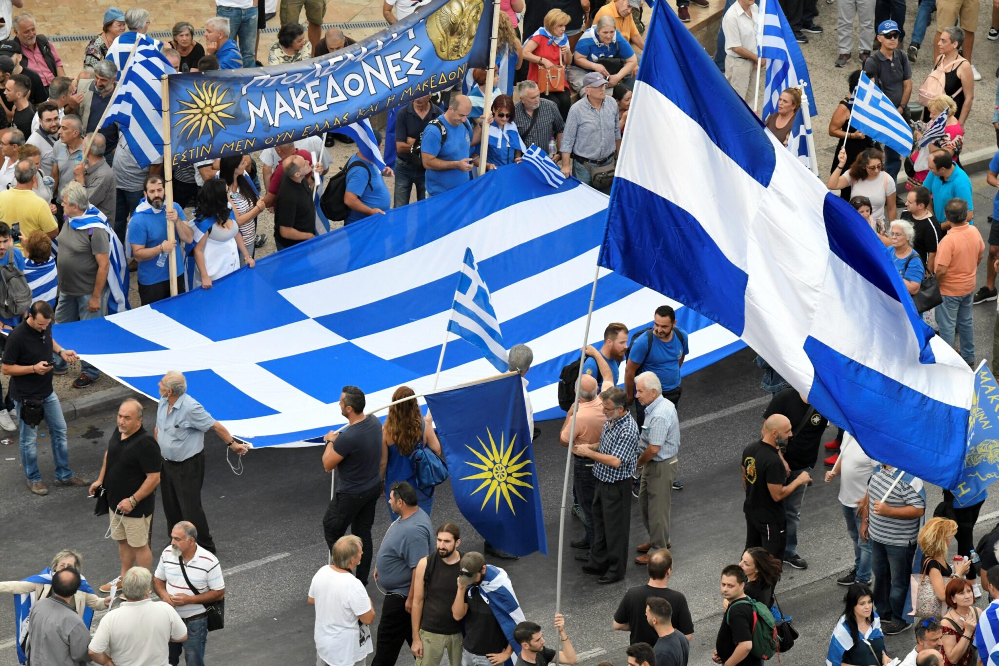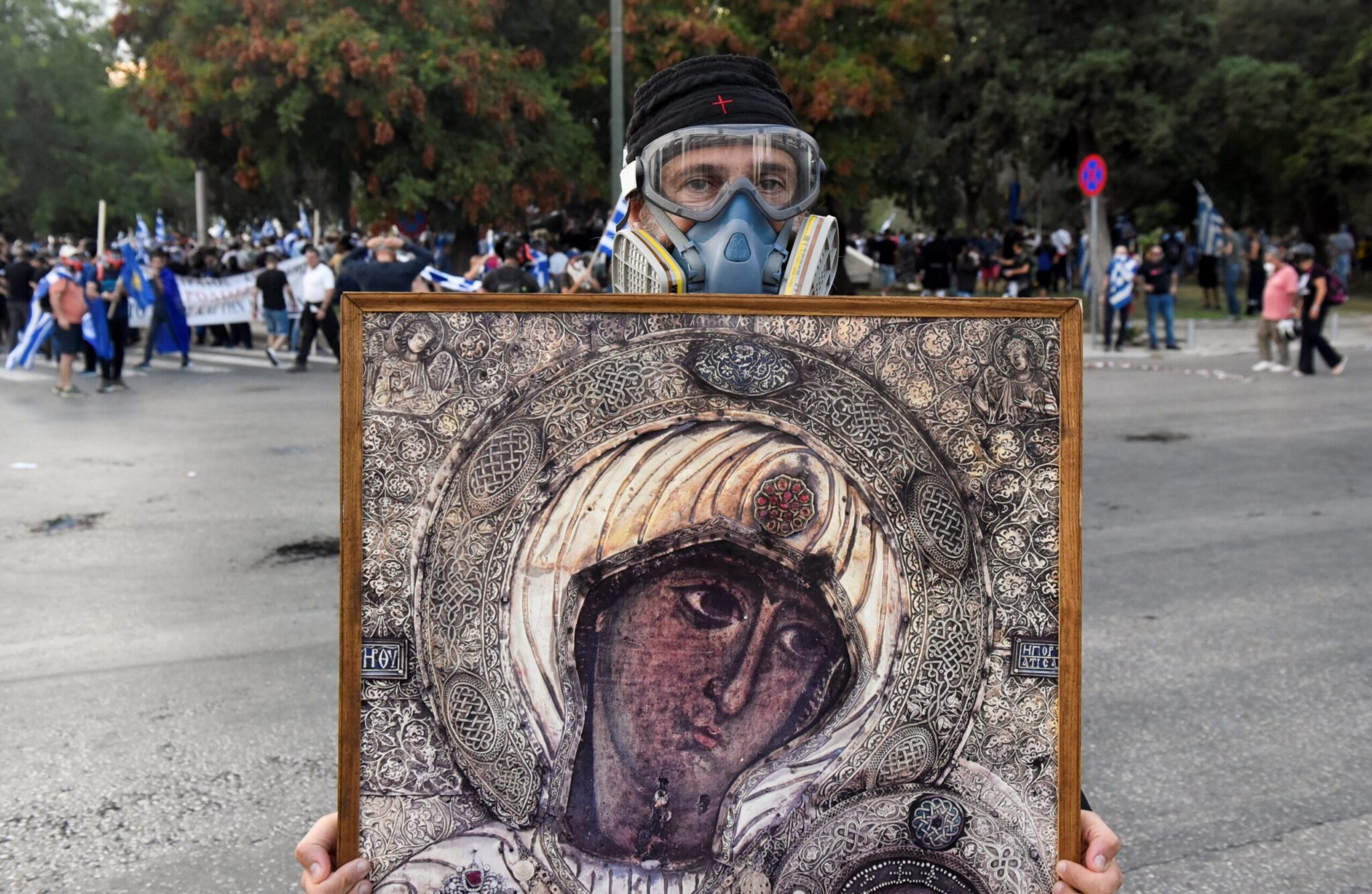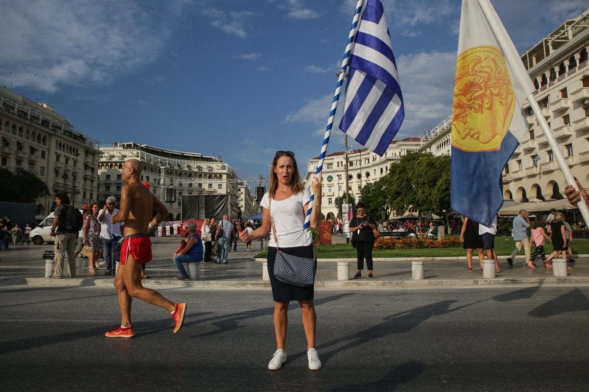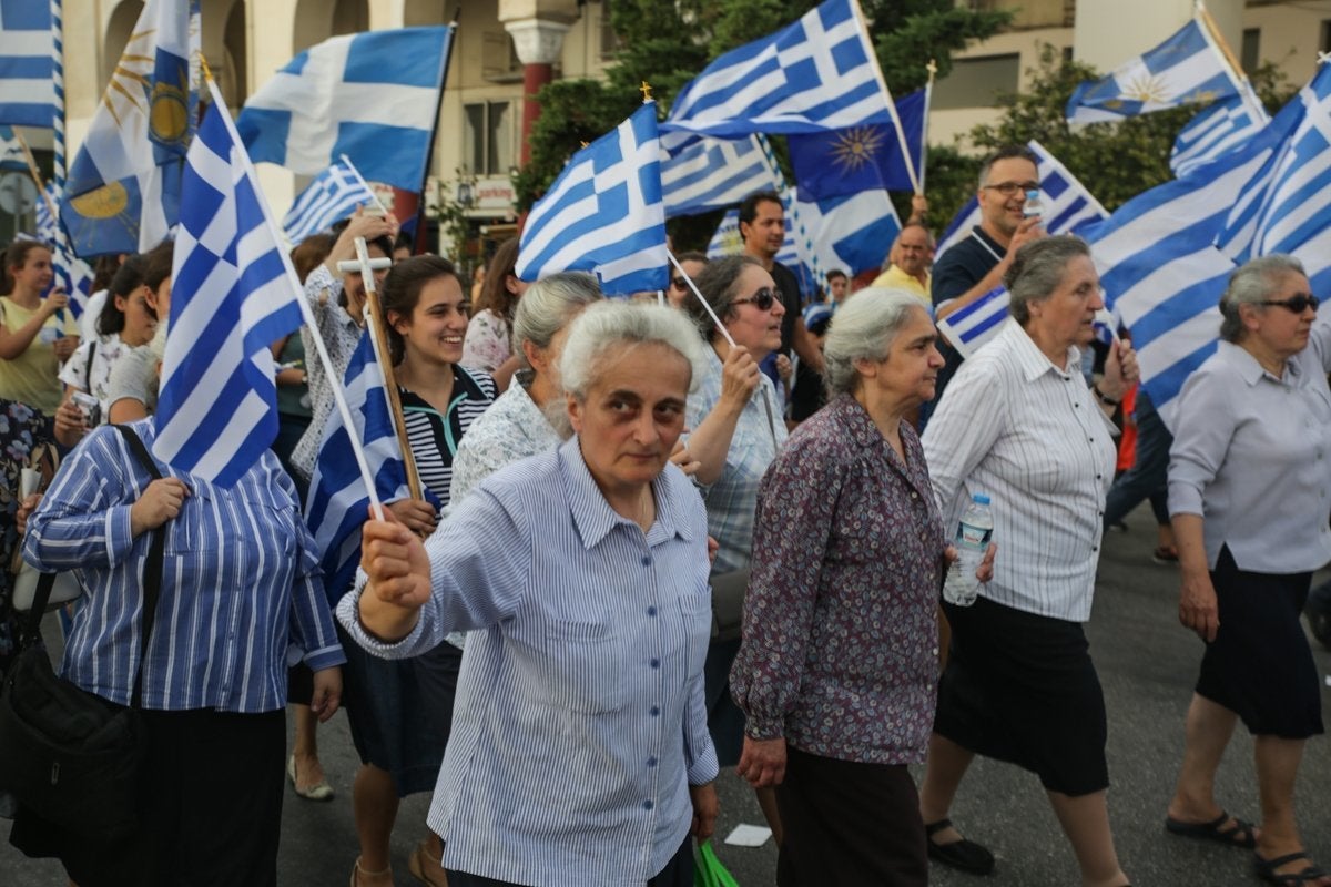 Στην μεγάλη συγκέντρωση πολιτών κατά της συμφωνίας των Πρεσπών για την νέα ονομασία της πΓΔΜ τα χρώματα της γαλανόλευκης κυριαρχούσαν στο αφού οι σημαίες όλων των μεγεθών που ανέμισαν ήταν αναρρίθμητες. Μεταξύ των διαδηλωτών νέοι άνθρωποι αλλά και ηλικιωμένοι όπως επίσης ιερείς ενώ από τα καρέ που σίγουρα ξεχωρίζουν είναι η κάπως αλλόκοτη εικόνα ενός καλόγερου που εμφανίζεται να κρατά μια μεγάλη εικόνα την οποία σηκώνει ψηλά ενώ φοράει μια…αντιασφυξιογόνα μάσκα!