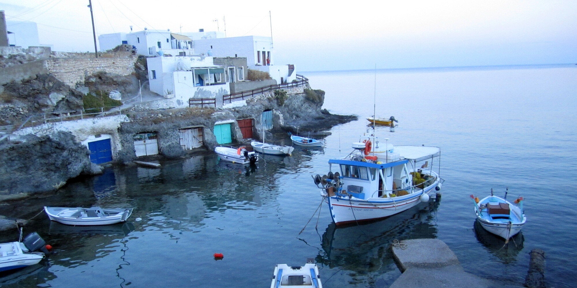 Περίπου 30 λεπτά μακριά από τα Πολλώνια της Μήλου, το μικρό νησάκι των Κυκλάδων, με έκταση περίπου 36 τετρ. χιλιομέτρων, με τους σχεδόν 600 μόνιμους κατοίκους, μύριζε αρώματα από τις ψαρόβαρκες, τις φραγκοσυκιές, τους αμέτρητους βασιλικούς, που φυτρώνουν στις χαραμάδες των τσιμεντένιων μικρών δρόμων και στις αυλές των κιμωλιάτικων σπιτιών. Το μοναδικό οδικό δίκτυο, με το μικρό λεωφορείο, που μοιάζει με τουριστικό βαν, διέσχιζε την στενή άσφαλτο, που πάντοτε καταλήγει σε χωματόδρομο, οδηγώντας στις μικρές, ημι-οργανωμένες παραλίες με τα γαλανά και κυπαρισσί νερά, άλλοτε με άμμο και άλλοτε με λευκό βότσαλο.