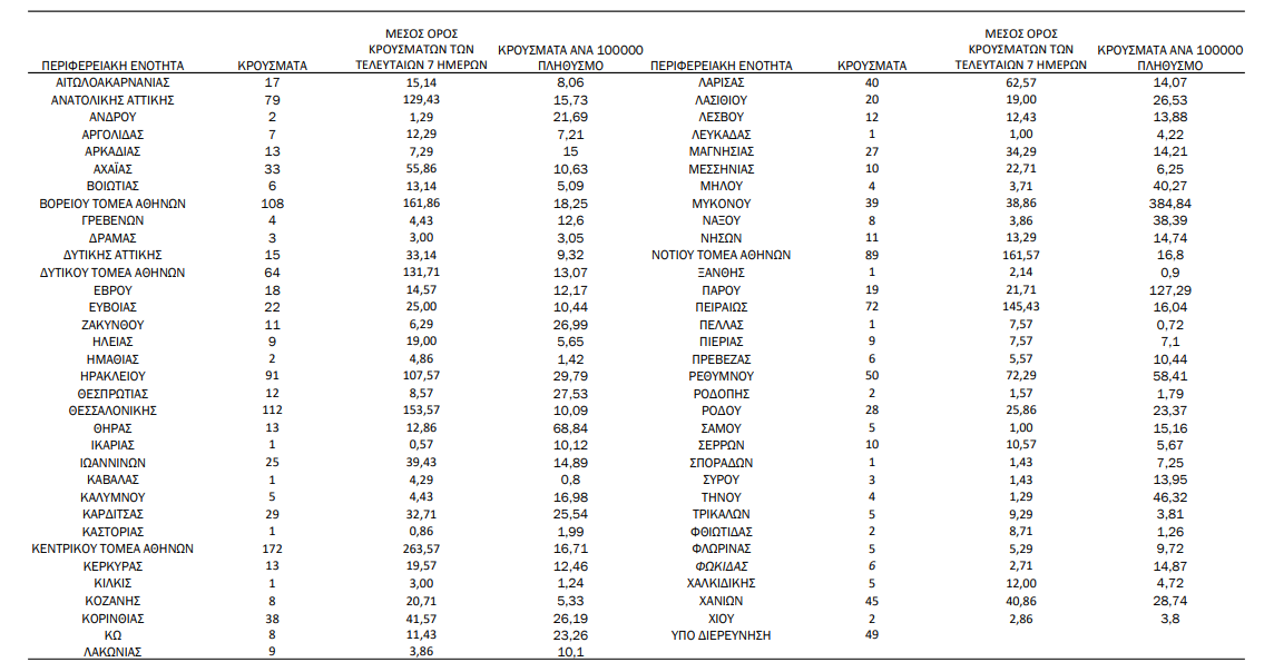 Τα κρούσματα αυτά προέκυψαν μετά από 9.720 μοριακά τεστ και 45.853 rapid test.