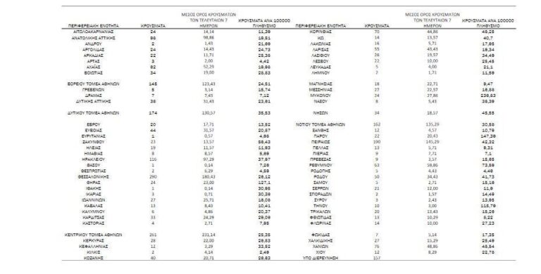 261 κρούσματα στην ΠΕ Κεντρικού Τομέα Αθηνών