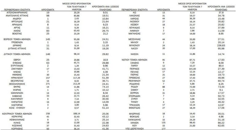 O χάρτης των κρουσμάτων στην Ελλάδα