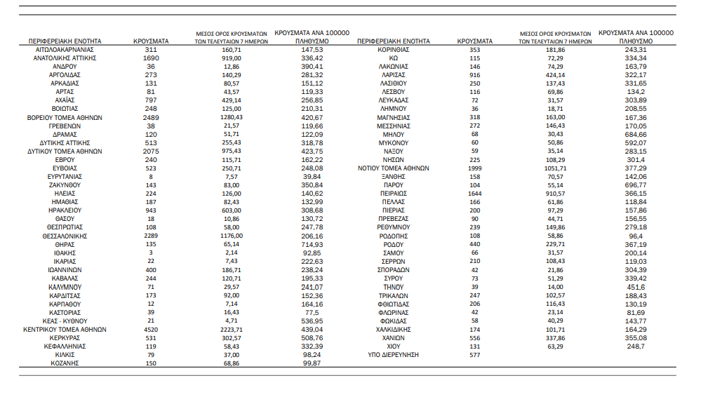 Οι νέοι θάνατοι ασθενών με COVID-19 είναι 19, ενώ από την έναρξη της επιδημίας έχουν καταγραφεί συνολικά 30.349 θάνατοι.