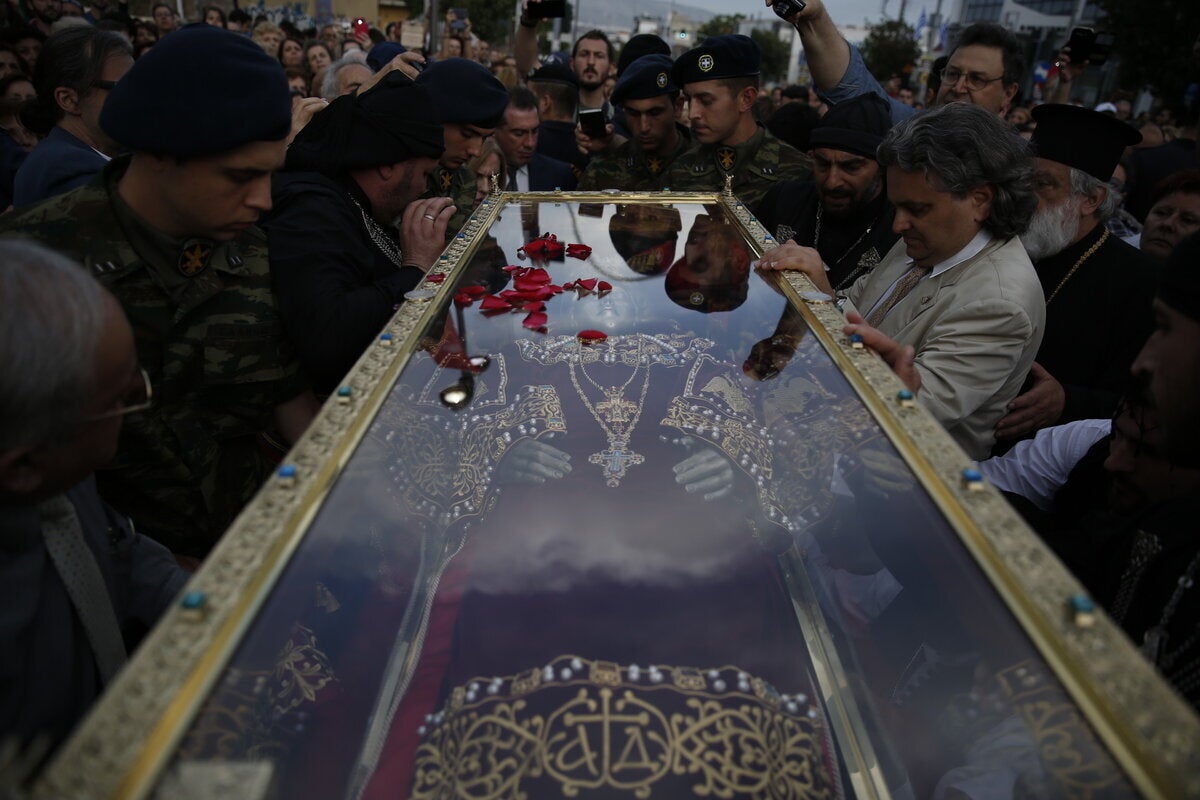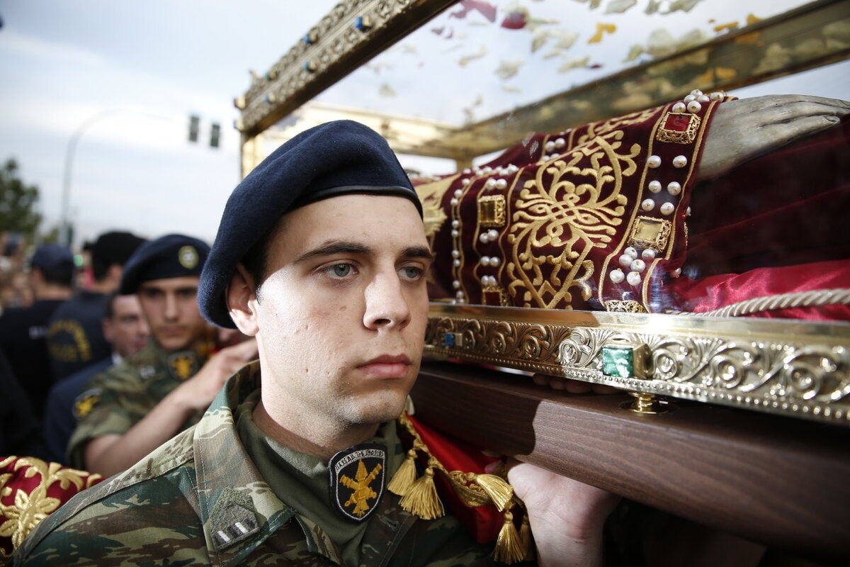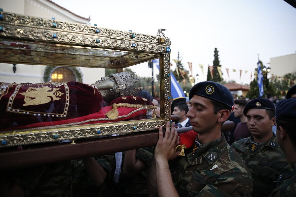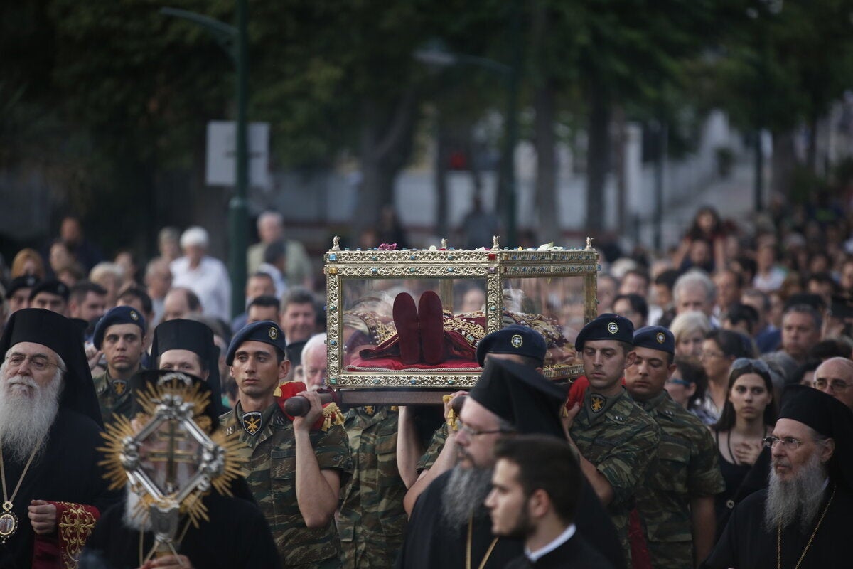 Ολοκληρώθηκε η τέλεση Δοξολογίας στον Ιερό Ναό Αγίας Βαρβάρας, του ομώνυμου Δήμου της Αττικής, για την υποδοχή του ιερού λειψάνου της Αγίας Ελένης, παρουσία της πολιτειακής, πολιτικής και στρατιωτικής ηγεσίας της χώρας, με τον υπουργό Ναυτιλίας Π.Κουρουμπλή, τον υφυπουργό Εξωτερικών Ι. Αμανατίδη, την υπουργό Τουρισμού Ε. Κουντουρά, τον αντιπρόεδρο της Ν.Δ. Κ. Χατζηδάκη, τον πρώην πρωθυπουργό Λ. Παπαδήμο, τους αρχηγούς ΓΕΣ, ΓΕΑ, Λιμενικού Σώματος και Αστυνομίας, τις δημοτικές αρχές των Δήμων Αιγάλεω και Αγίας Βαρβάρας, μέλη του διπλωματικού σώματος και προπάντων με την παρουσία χιλιάδων λαού.