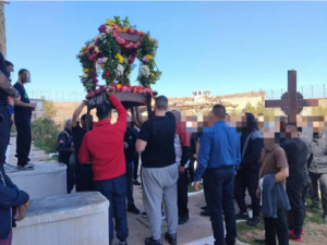 Πίσω από τους ψηλούς τοίχους και τα συρματοπλέγματα, η τελετή απέκτησε έναν ιδιαίτερο συμβολισμό. Στο προαύλιο του σωφρονιστικού καταστήματος, κρατούμενοι συμμετείχαν σιωπηλά στην πομπή, κουβαλώντας ο καθένας το δικό του βάρος και τη δική του προσωπική διαδρομή.
