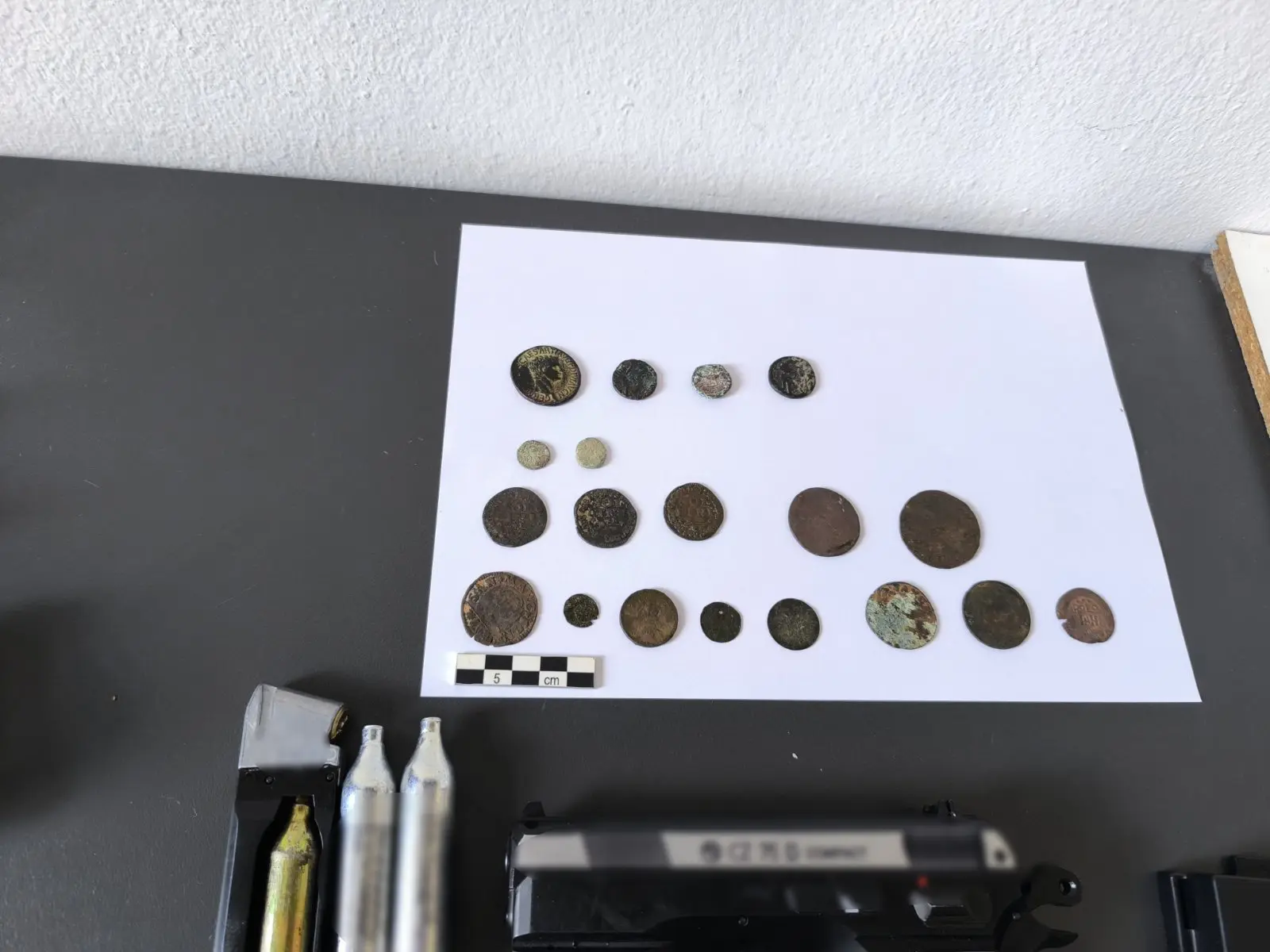 - 20- νομίσματα, μεταξύ των οποίων και το απεικονιζόμενο στην αναρτημένη φωτογραφία στο μέσο κοινωνικής δικτύωσης,