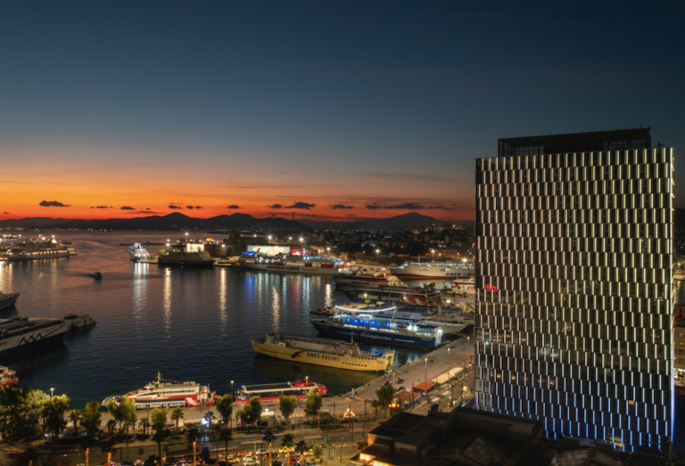 Ο πρώτος «πράσινος» ουρανοξύστης της χώρας, που υλοποιείται από την Dimand, την Ευρωπαϊκή Τράπεζα Ανασυγκρότησης και Ανάπτυξης (EBRD) και την Prodea Investments, γιορτάζει φωταγωγημένος τα φετινά Χριστούγεννα με το ειδικό light art installation «Rebirth» που δημιούργησε η ομάδα του Danilof Studio. Αλληλουχίες χρωμάτων και φωτεινών εντάσεων αναπτύσσονται σε όλα τα πτερύγια του Πύργου και ερμηνεύουν με εντυπωσιακό τρόπο τις νέες όψεις στο νυχτερινό τοπίο του Λιμανιού.