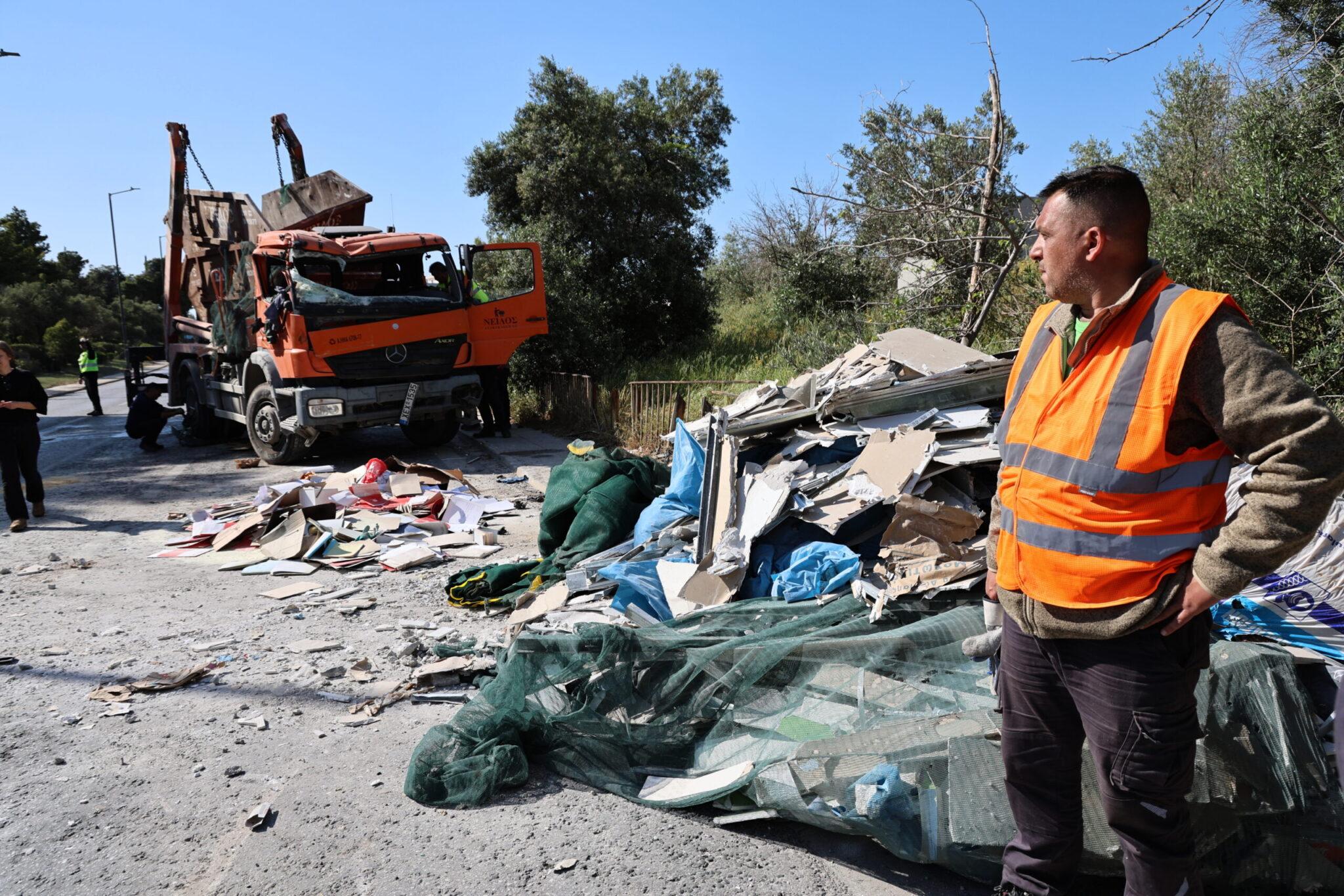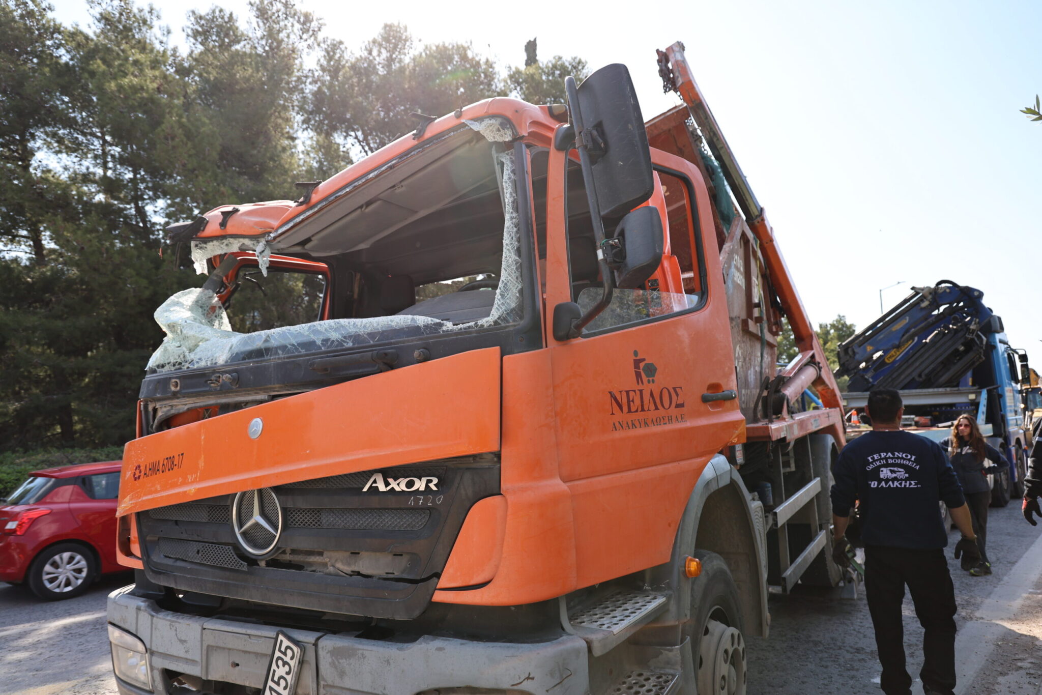 Γύρω στις 8:30 το πρωί, στο ύψος του Ελληνικού, φορτηγό που μετέφερε οικοδομικά και μονωτικά υλικά ανετράπη όταν, για άγνωστη μέχρι στιγμής αιτία, μετακινήθηκε το φορτίο του.