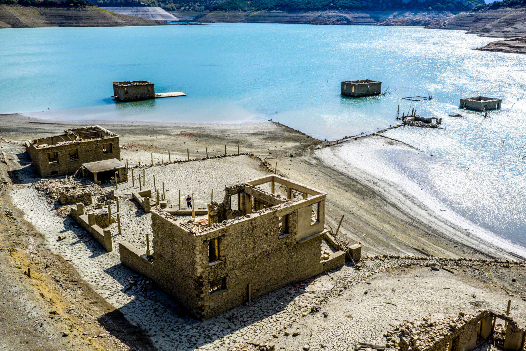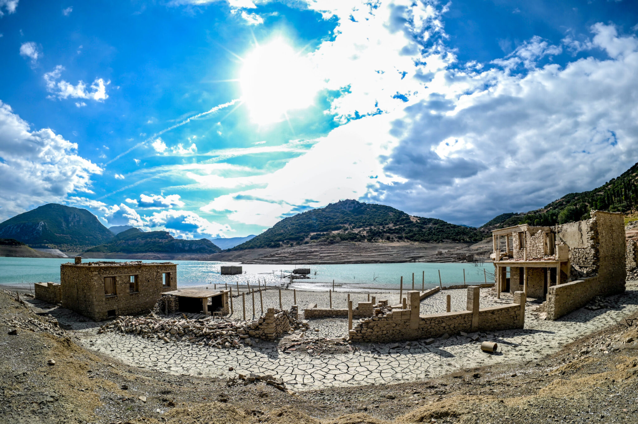 Το «βυθισμένο» χωριό Κάλλιο στη λίμνη Μόρνου έχει πλέον αναδυθεί ολοκληρωτικά και οι νέες εικόνες που ήρθαν στο προσκήνιο εντυπωσιάζουν.