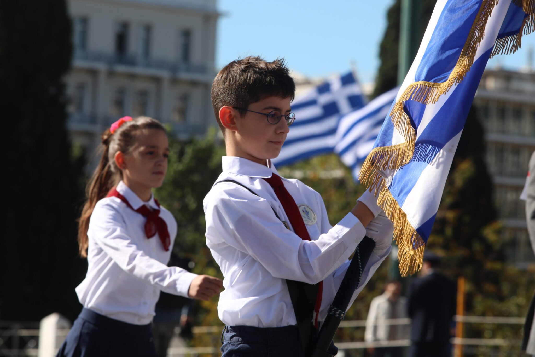 Οι μαθητές τίμησαν το ιστορικό «όχι» του Ιωάννη Μεταξά κατά των Ιταλών, ενώ νωρίτερα το πρωί ξεκίνησαν οι εορταστικές εκδηλώσεις με κανονιοβολισμούς στον Λυκαβηττό και έπαρση της ελληνικής σημαίας στον Ιερό Βράχο της Ακρόπολης.