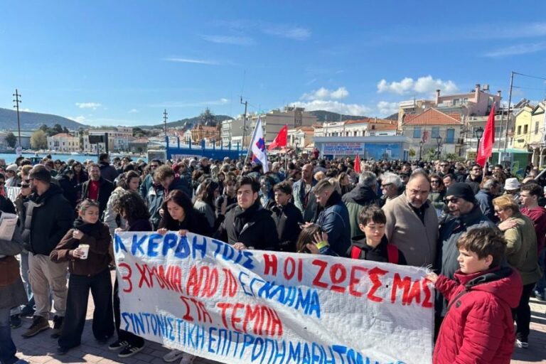 14.34 Λέσβος: Συγκέντρωση στην Πλατεία Σαπφούς για τα τρία χρόνια από το έγκλημα στα Τέμπη