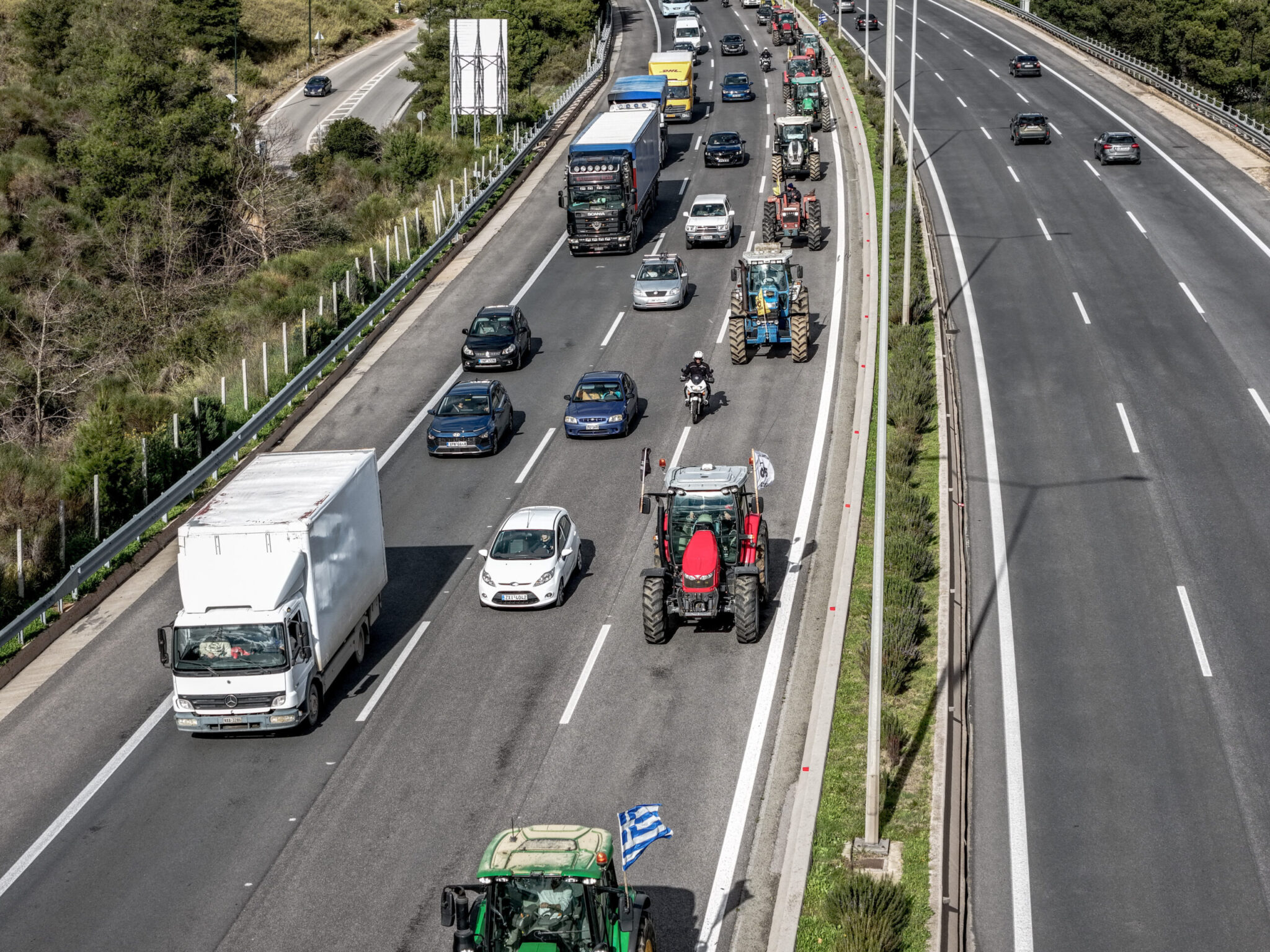 Σαράντα ένα τρακτέρ πέρασαν τα διόδια των Αφιδνών συνοδεία περιπολικού ενώ άλλα τρία τρακτέρ πέρασαν από τα διόδια της Ελευσίνας.