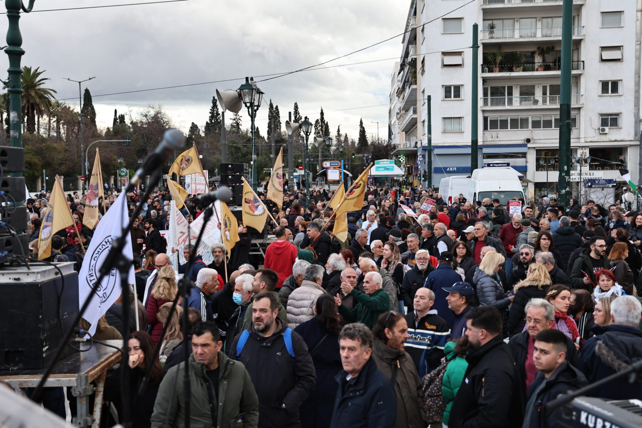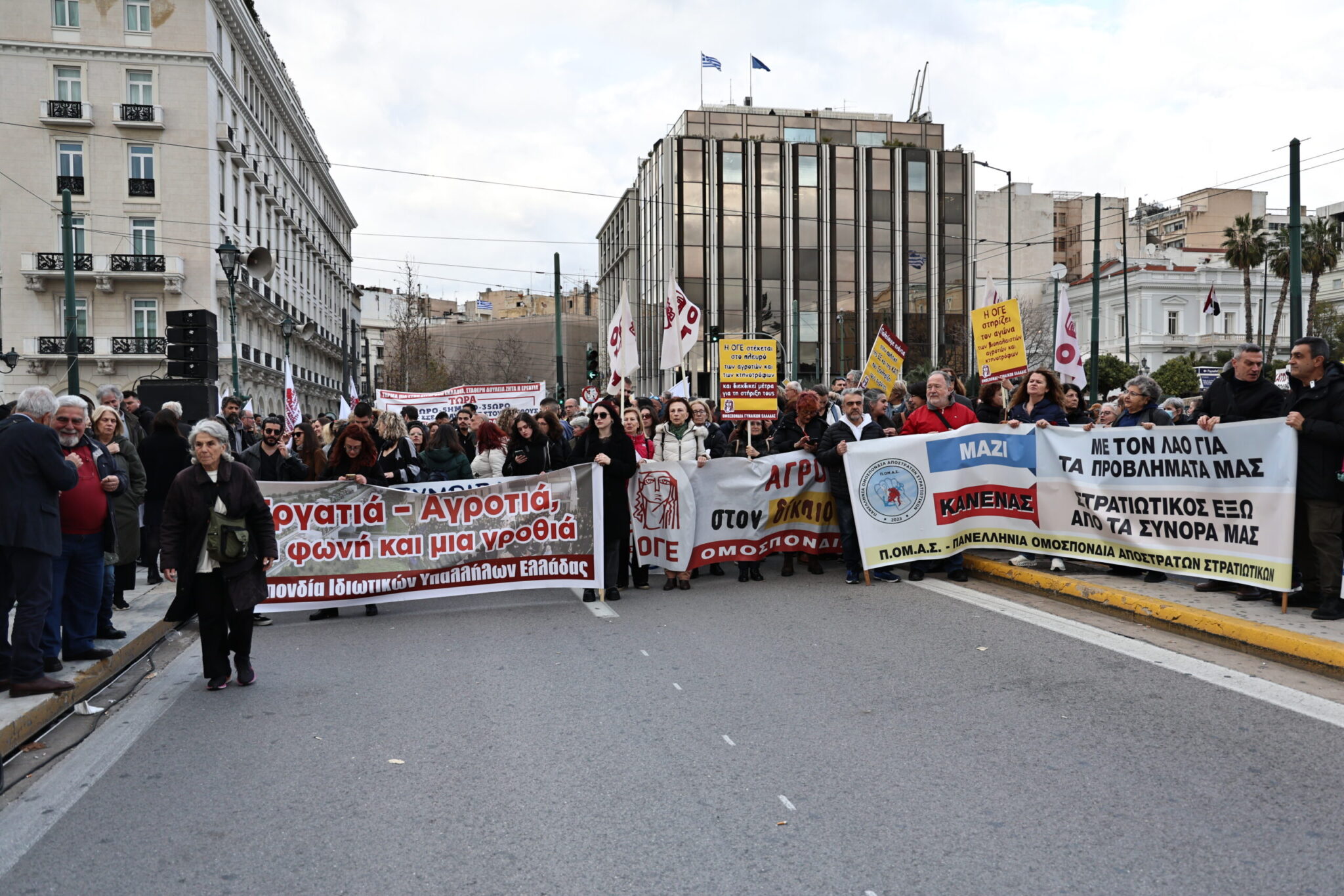 Σημειώνεται ότι στο Σύνταγμα για να συμπαρασταθούν στους αγρότες βρίσκονται και σωματεία εργαζομένων, φοιτητικών συλλόγων και ομοσπονδίες εργαζομένων.