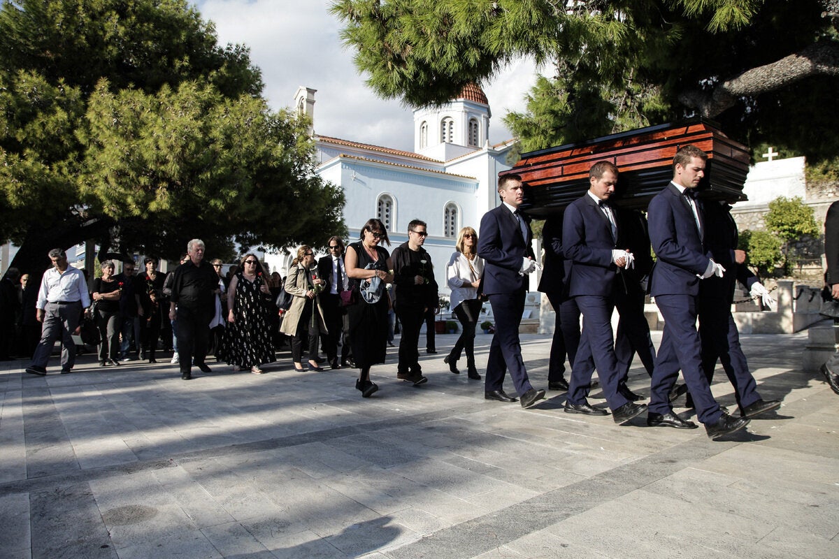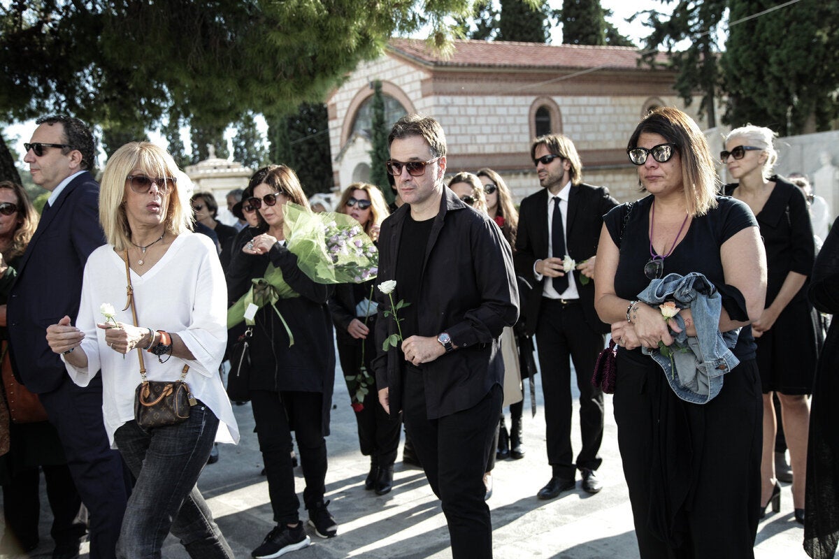 Στην κηδεία της παραβρέθηκαν, μεταξύ άλλων, οι : Παντελής Βούλγαρης, Ιωάννα Καρυστιάνη, Ζυράννα Ζατέλη,Τίτος Πατρίκιος, Άλκη Ζέη, Μάρω Δούκα, Λάκης Παπαστάθης, Θανάσης Νιάρχος, Μάνος Ελευθερίου, Ρένη Πιττακή, Βασίλης Παπαβασιλείου, Μαριάννα Κάλμπαρη, Λίνα Νικολακοπούλου, ‘Αννα Κοκκίνου, Κώστας Γεωργουσόπουλος, Φωτεινή Τσαλίκογλου, Μισέλ Φάις, Μπέττυ Αρβανίτη, Αλέξης Σταμάτης, Βασίλης Πουλαντζάς, Γιάννης Μόρτζος, Γιώργος Βέλτσος, Αλέξανδρος Λυκουρέζος, Μίμης Ανδρουλάκης, Χρήστος Χωμενίδης, Μάριος Ποντίκας, Θοδωρής Γκόνης, Σοφία Σεϊρλή, Γιώργος Κοτανίδης , Στέφανος Ληναίος, Έλλη Φωτίου, Ντίνα Κώνστα, Μαρία Κεχαγιόγλου, Μαρία Καλλιμάνη, Μάξιμος Μουμούρης, ο διευθυντής του γραφείου της υπουργού Πολιτισμού Ευάγγελος Πολίτης- Στεργίου και οι πρώην υπουργοί Κώστας Λαλιώτης, Μιλένα Αποστολάκη και ‘Αννα Νταλάρα και τα ανίψια της, Εύη Δρούτσα και Ανέστης Αναγνωστάκης.