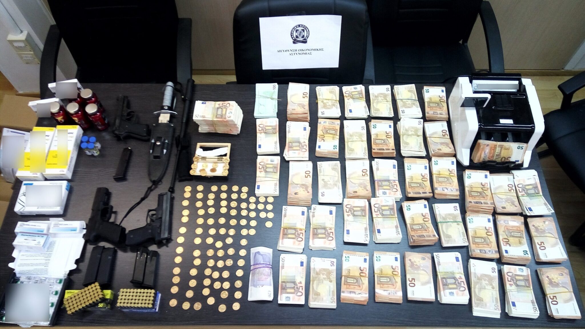 Στις έρευνες που πραγματοποιήθηκαν κατασχέθηκαν περισσότερα από 2.000.000 τεμάχια παράνομων ουσιών και σκευασμάτων, εκ των οποίων τα 90.000 είναι διεγερτικά χάπια Viagra. Η συνολική αξία των κατασχεθέντων αναβολικών – φαρμάκων υπερβαίνει τα 10 εκατ. ευρώ, ενώ η ζημία για το Δημόσιο από τη φοροδιαφυγή ξεπερνά τα 3 εκατ. ευρώ.
