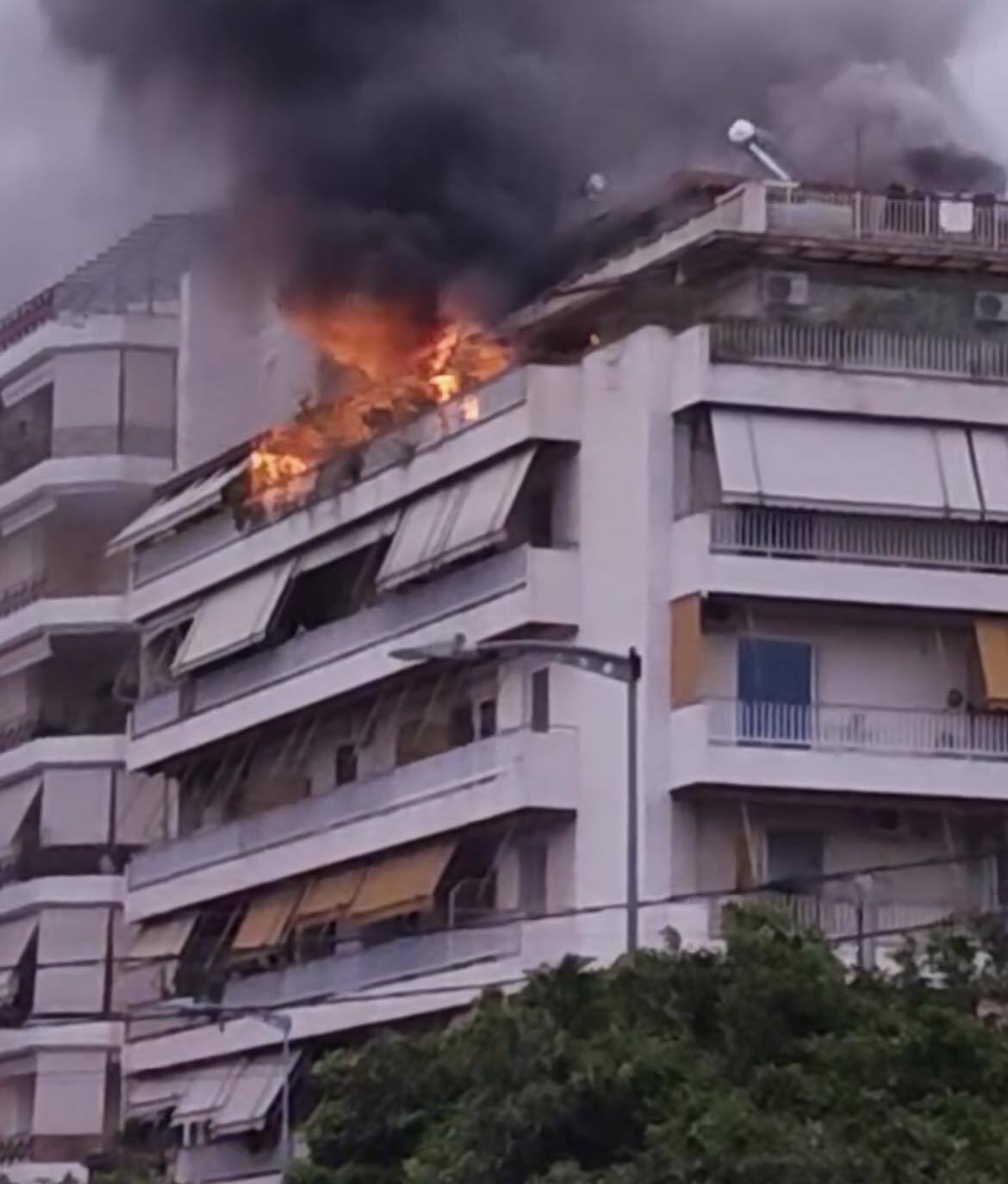 Η πυρκαγιά εκδηλώθηκε στο διαμέρισμα του τελευταίου ορόφου της πολυκατοικίας, στην οδό Βιζυηνού.