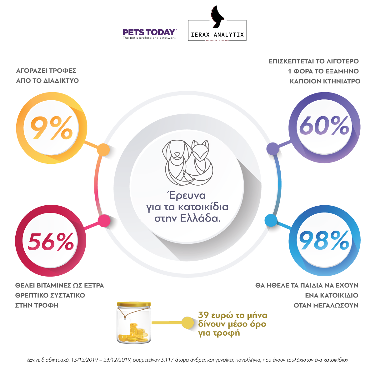 *Σημειώνεται ότι τα 3.117 ερωτηματολόγια συμπληρώθηκαν διαδικτυακά από τις 13 μέχρι τις 23 Δεκεμβρίου 2019, από άνδρες και γυναίκες στην Ελλάδα που έχουν τουλάχιστον ένα κατοικίδιο στο σπίτι τους.