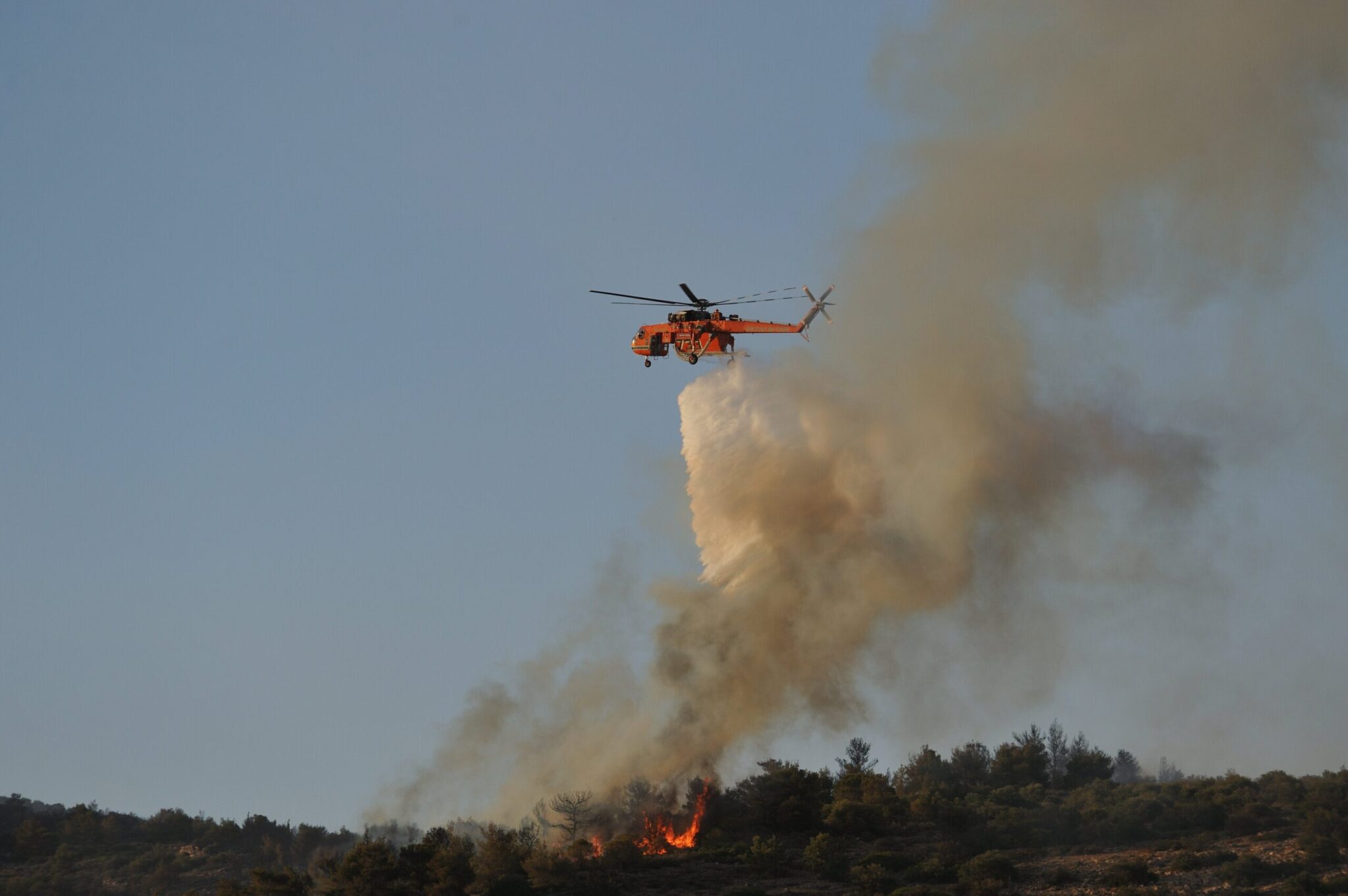 Οι καιρικές συνθήκες σήμερα είναι πολύ καλύτερες με τους ανέμους να έχουν στραφεί σε ήπιους ανατολικούς, γεγονός που διευκολύνει το έργο της πυρόσβεσης. Από το πρωί ξεκίνησαν να επιχειρούν και εναέρια μέσα δασοπυρόσβεσης.