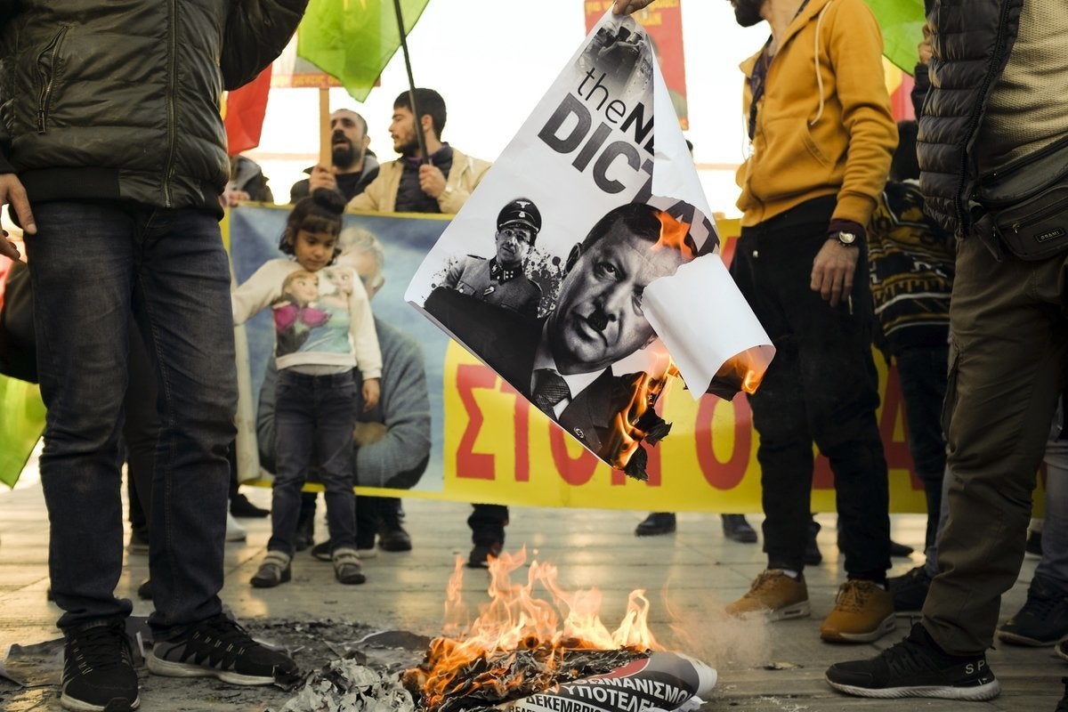 Kurds living in Greece protest against Recep Tayyip Erdogan on the margin of his visit to Greece, on Dec. 7, 2017u0026nbsp;