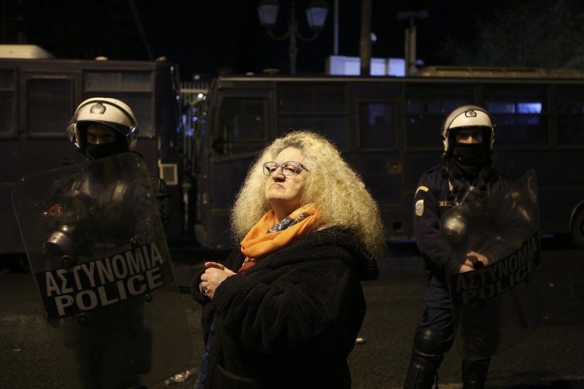 A woman is injured during clashes after the Polytechnic anniversary rally, in Athens, on Nov. 17, 2017