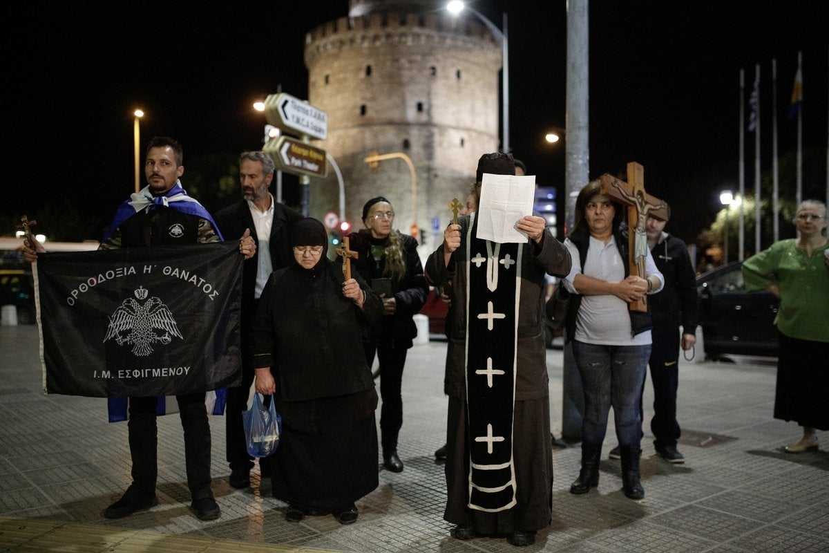u0026Icirc;ationalist and para-religious organizations protest for second day outside the Aristotle Theater on the occasion of Fernando Pessoa’s Theatrical Performance ‘The Time of the Devil’, Thessaloniki, Greece on October 19, 2017