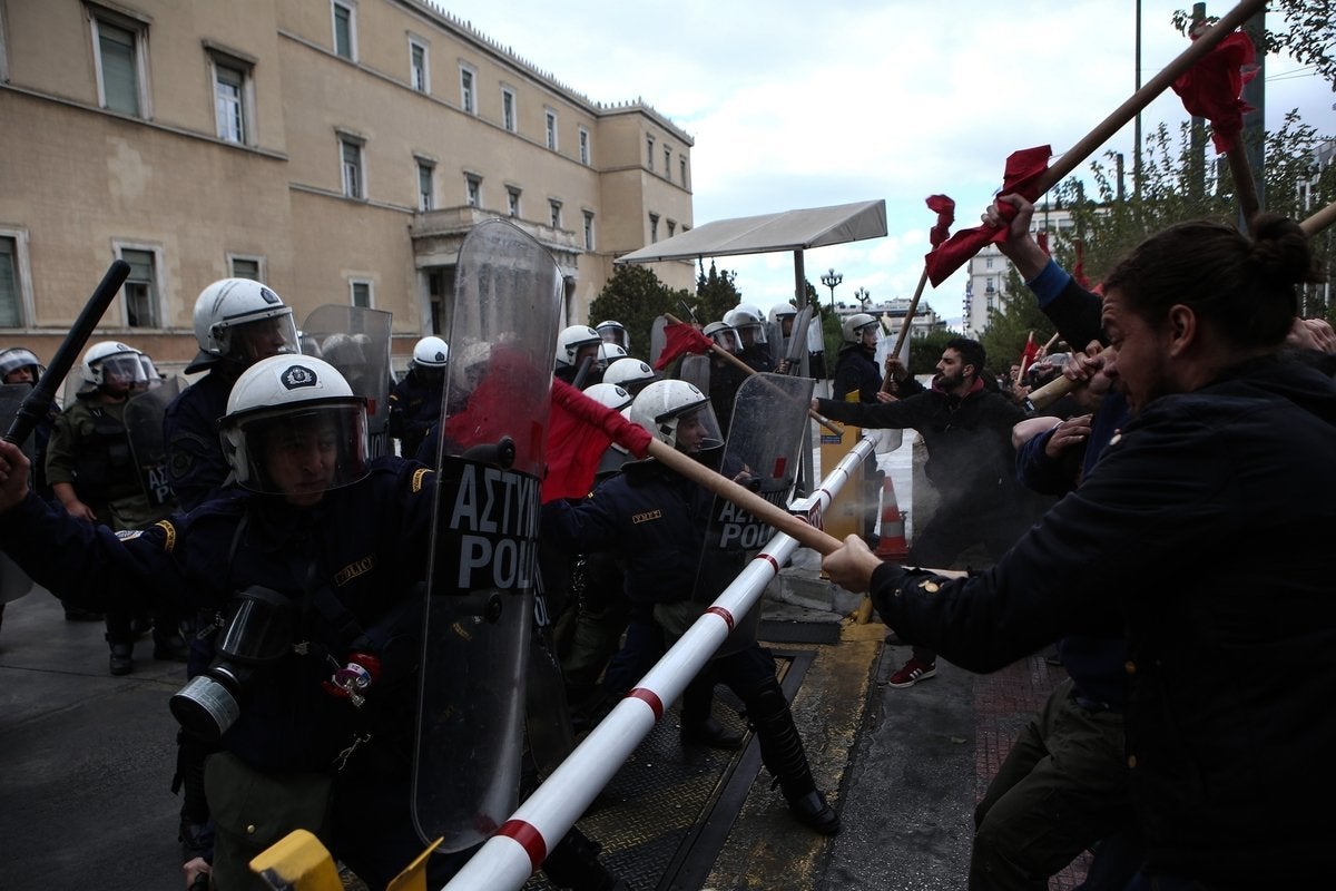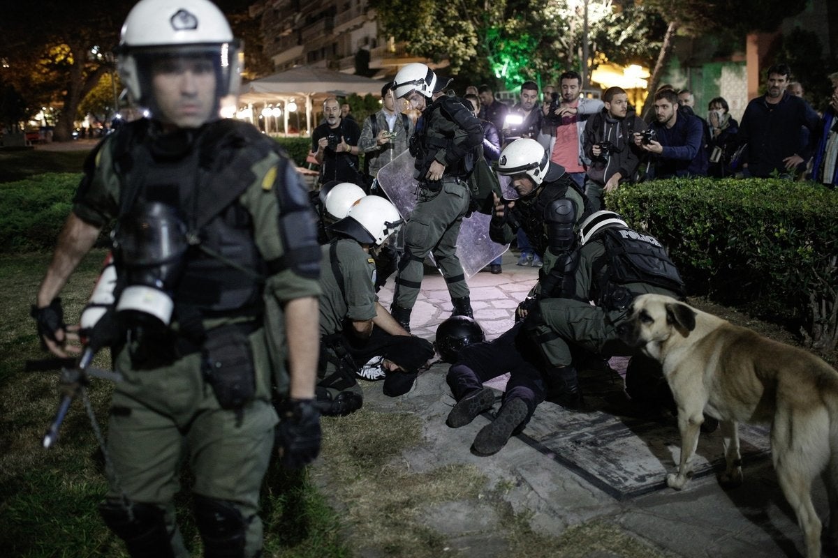 Clashes between protesters and police officers during a protest rally in memoriam of the nine-year anniversary of the murder of Alexis Grigoropoulos by a police officer, in Athens, Dec. 6, 2017