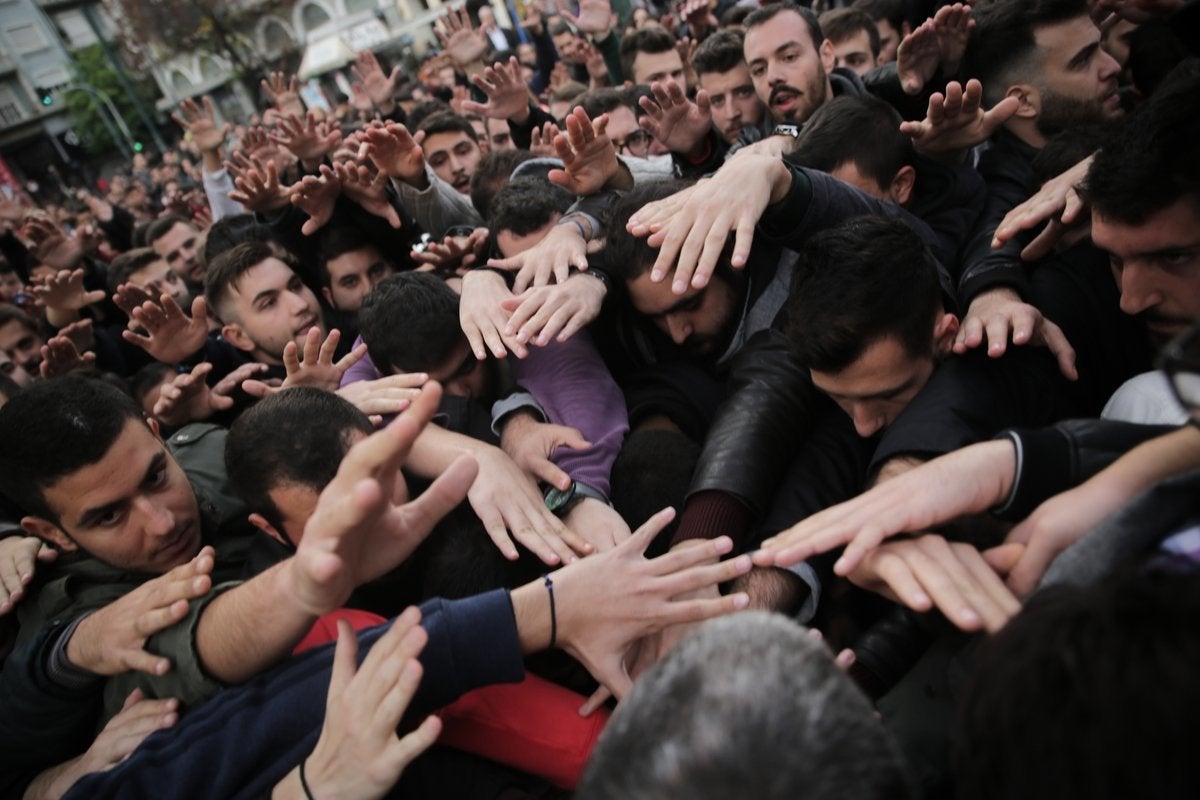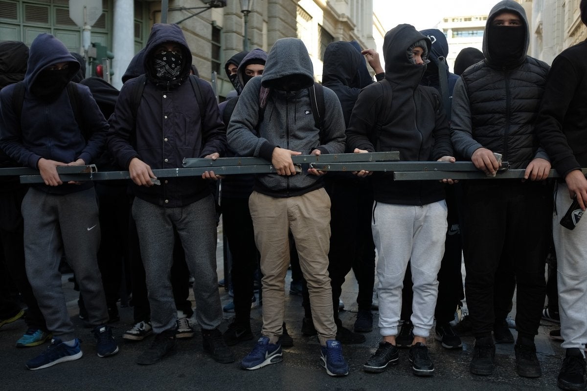 March commemorating the 1973 Polytechnic students uprising against the military junta, in Athens, Greece on November 17, 2017. Greece is commemorating 43 years since a violent crackdown of a student uprising against the military junta with a demonstration heading towards the US Embassy in Athens