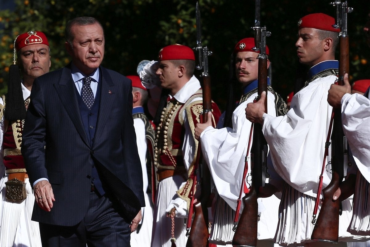 The President of the Hellenic Republic Mr Prokopis Pavlopoulos welcomes the Turkish President of Turkey, Recep Tayyip Erdogan at the Presidential Mansion in Athens, Greece on December 7, 2017