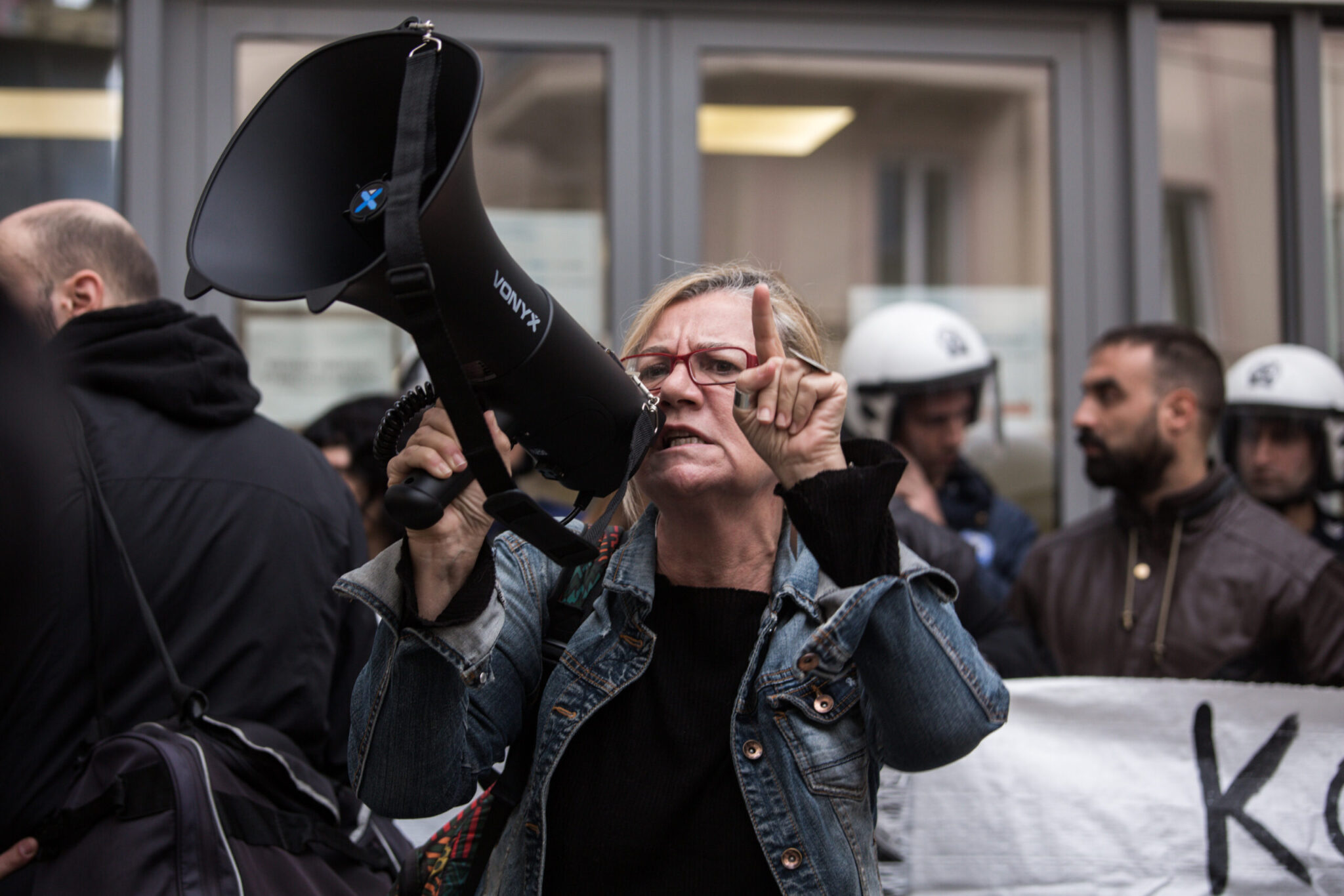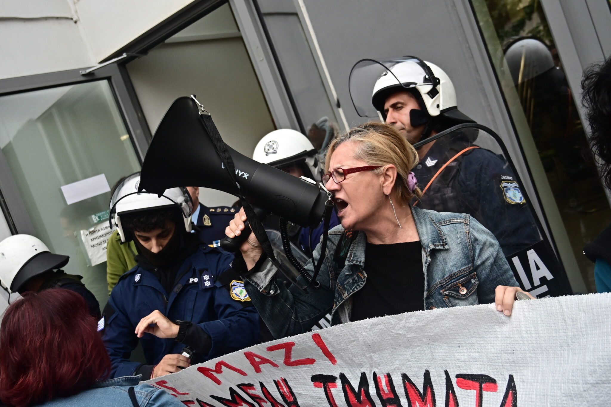Ένταση σημειώθηκε σήμερα το πρωί έξω από τα γραφεία της Διεύθυνσης Πρωτοβάθμιας Εκπαίδευσης Α΄ Αθήνας, που βρίσκονται στην οδό Χίου στο Μεταξουργείο, κατά τη διάρκεια συγκέντρωσης διαμαρτυρίας για τις συνενώσεις τμημάτων στα σχολεία της περιοχής.
