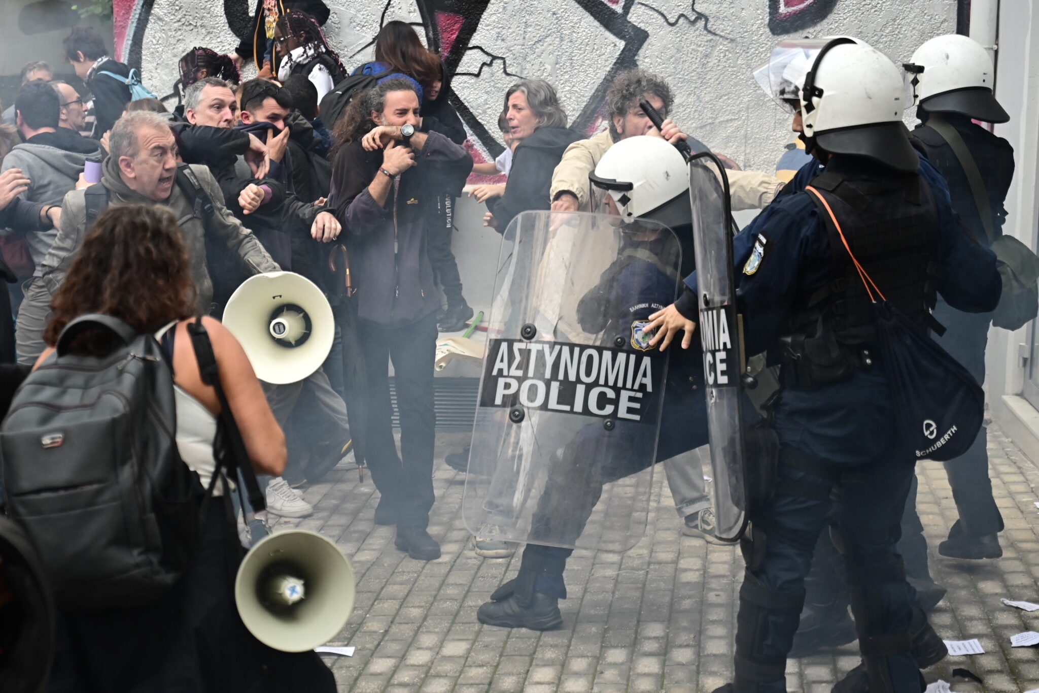Ειδικότερα, σύμφωνα με την ΕΛΑΣ, λίγο μετά τις 10 το πρωί μέλη του συλλόγου γονέων του 36ου δημοτικού σχολείου Αθήνας και από τις συλλογικότητες «Όχι μετρό στην πλατεία Εξαρχείων» και «Ανοιχτή συνέλευση υπεράσπισης του λόφου Στρέφη» στην προσπάθεια τους να εισέλθουν στο κτίριο επιτέθηκαν στις αστυνομικές δυνάμεις, που τους απώθησαν κάνοντας χρήση χημικών και χειροβομβίδων κρότου-λάμψης.